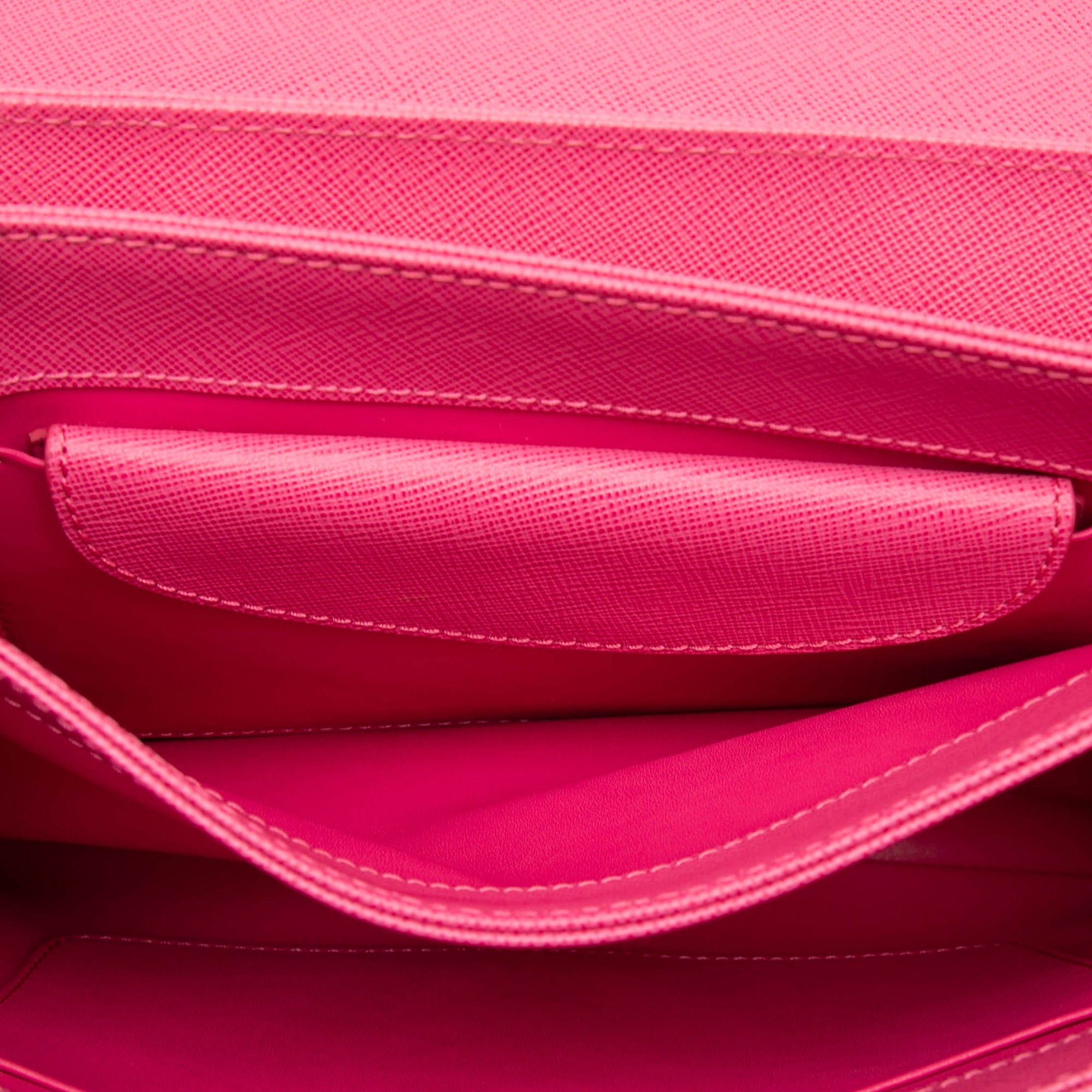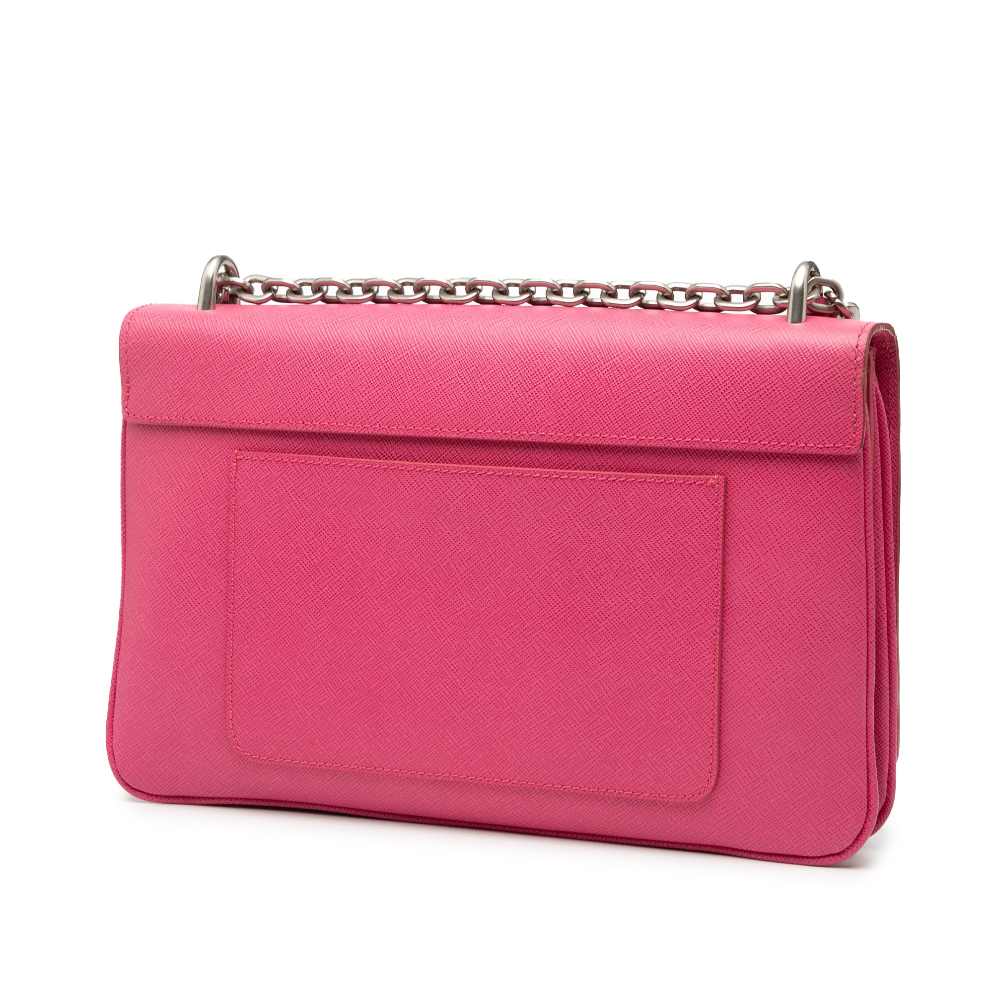 Pink Prada Saffiano Lux Lock Chain Flap Crossbody Bag