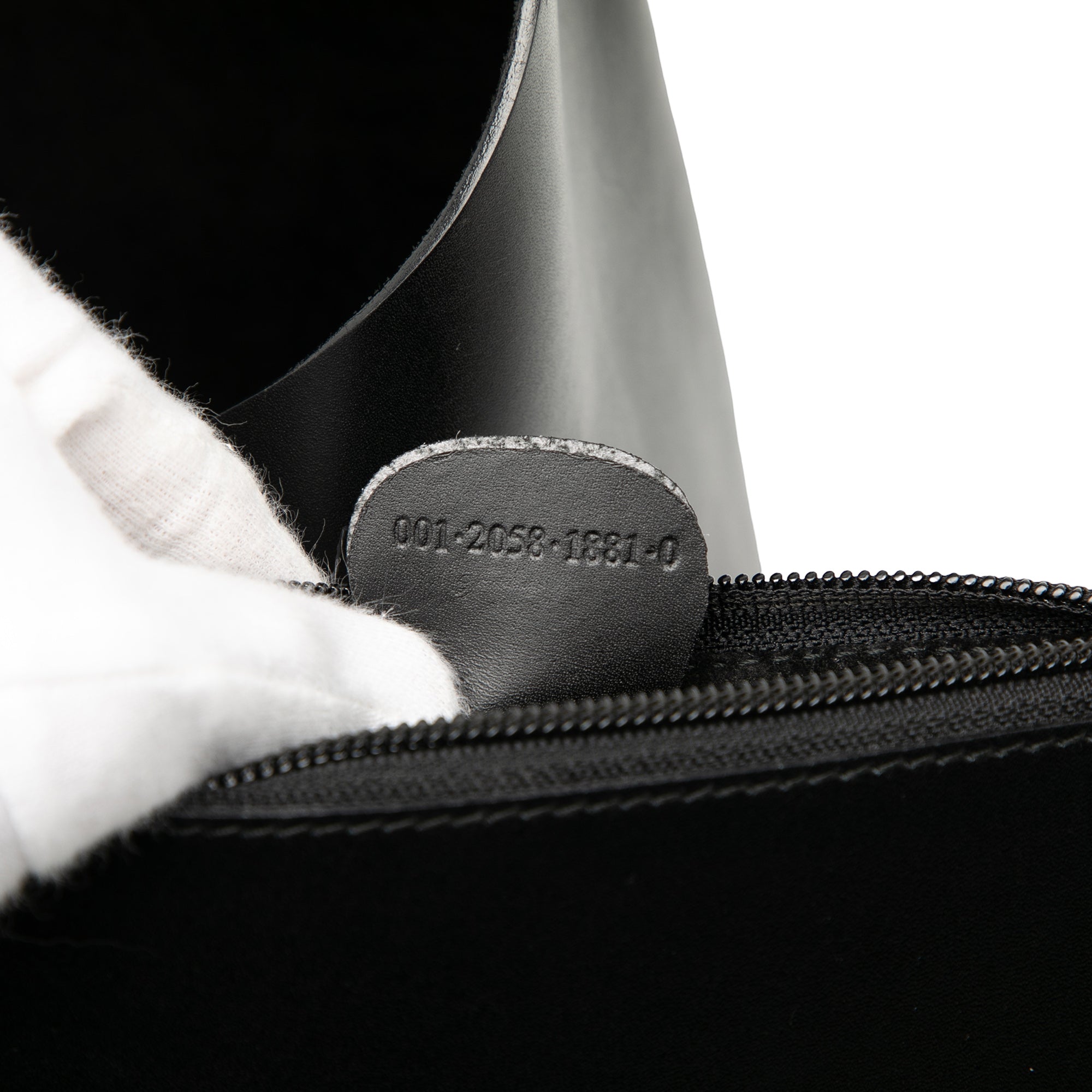 Product Details: Black Gucci Leather Bamboo Shoulder Bag. This shoulder bag features a leather body, a bamboo handle, and an open top. 13.4" L x 11" W x 5.1" D, 7.5" drop. Serial number 001 2058 1881 0.