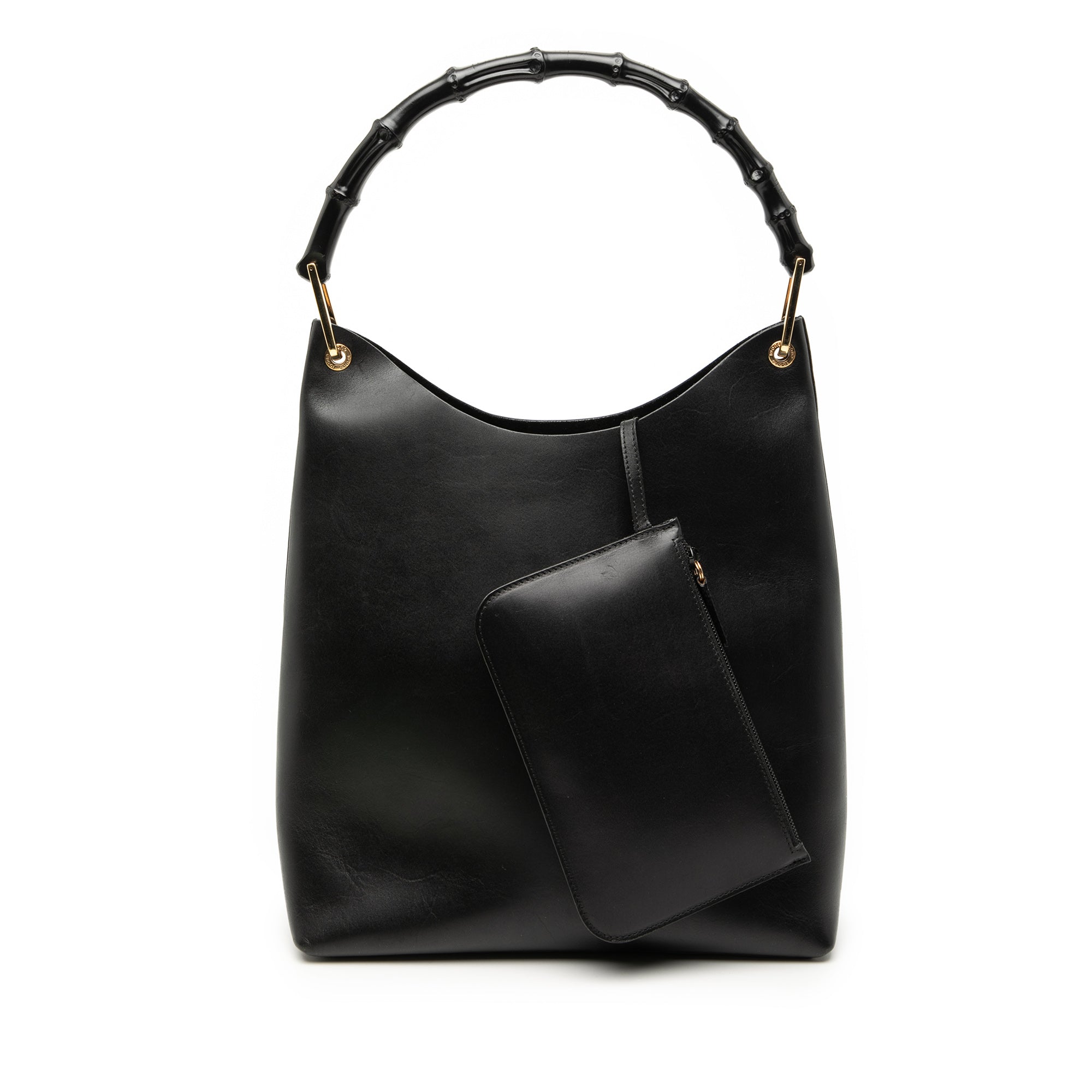 Please note this is a pre-owned item that may display signs of wear consistent with the condition listed above and shown in photos. Designer Revival guarantees this is an authentic Black Gucci Leather Bamboo Shoulder Bag or 100% of your money back. Learn more about our authentication process.