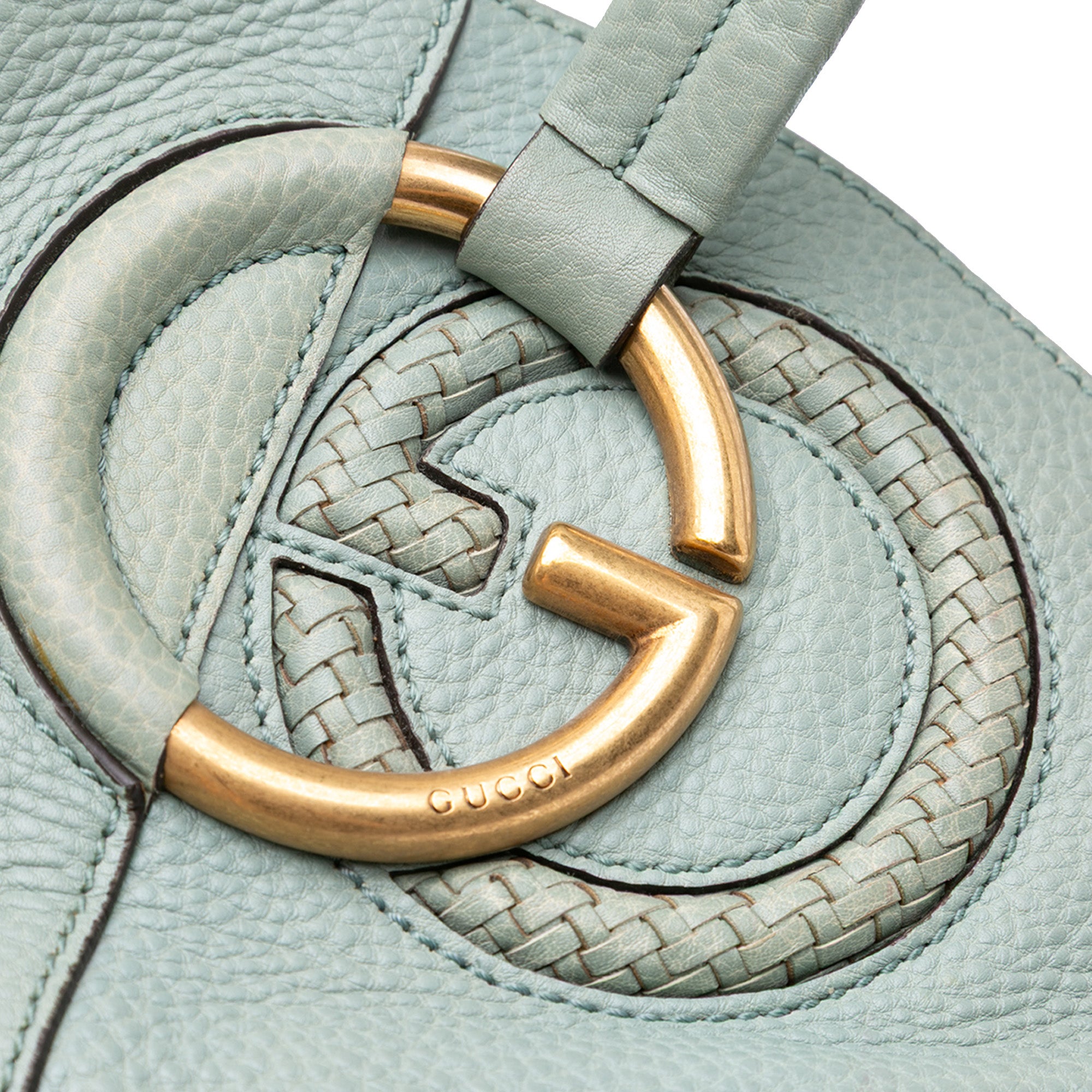 Blue Gucci Medium Pebbled Calfskin Twill Tote