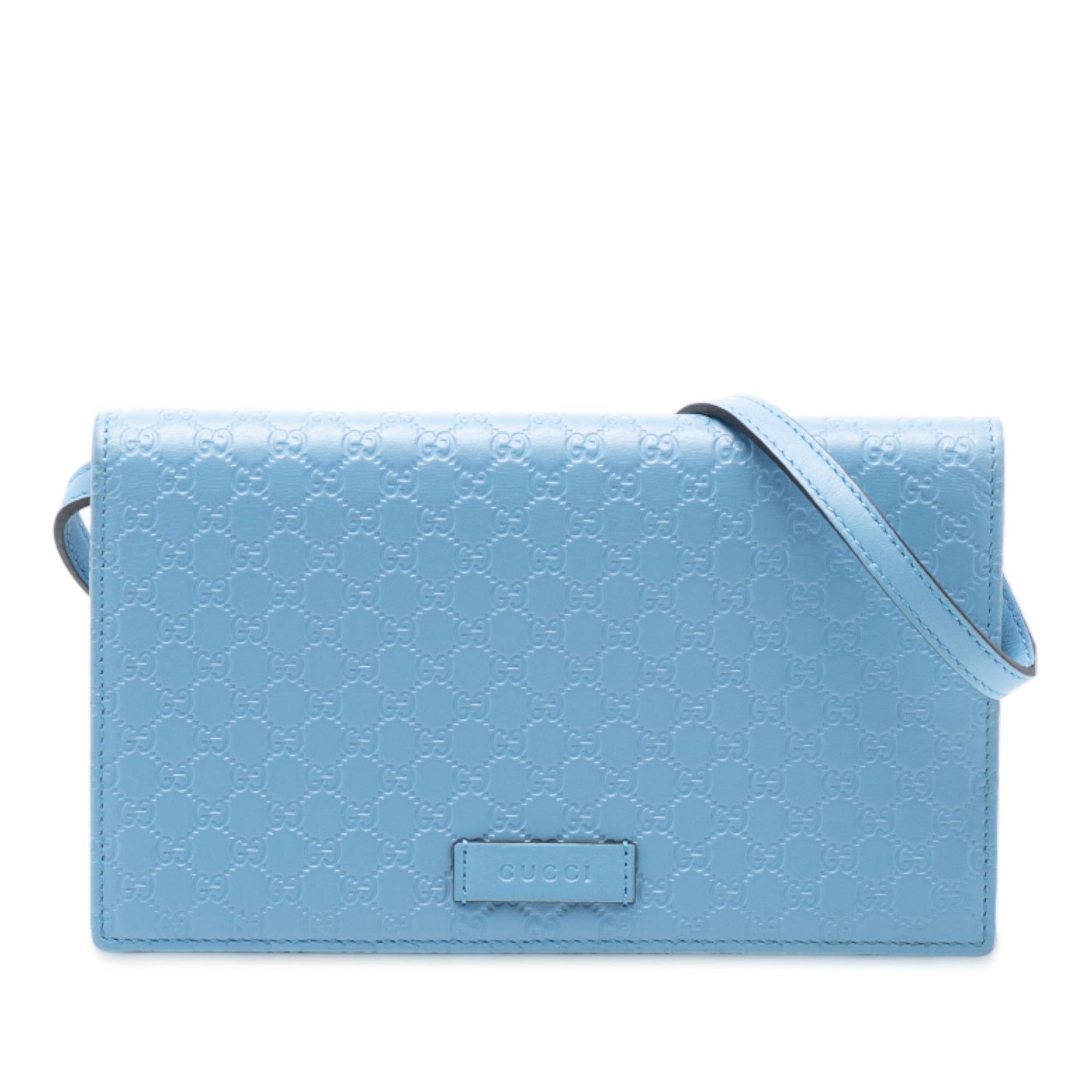Blue Gucci Microguccissima Wallet on Strap Crossbody Bag