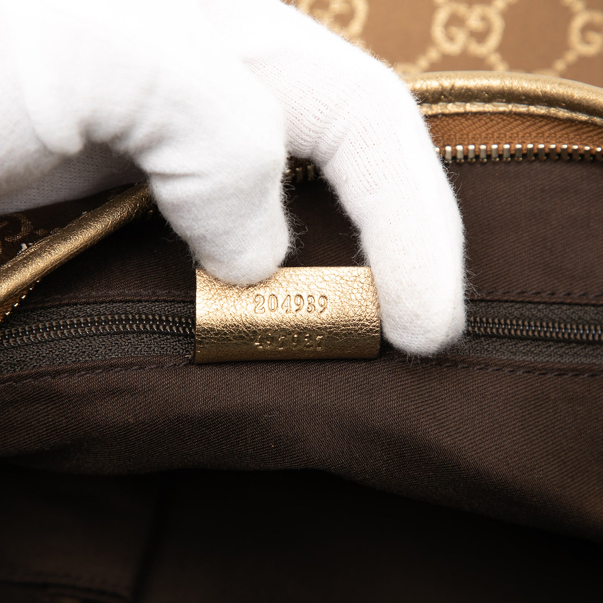 Product Details: Brown Gucci GG Canvas Web Princy Crossbody. This crossbody bag features a canvas body with leather trim, an adjustable flat leather strap, a top zip closure, and interior zip and slip pockets. 10.2" L x 12.2" W x 0.6" D. Serial number 204939 497927.