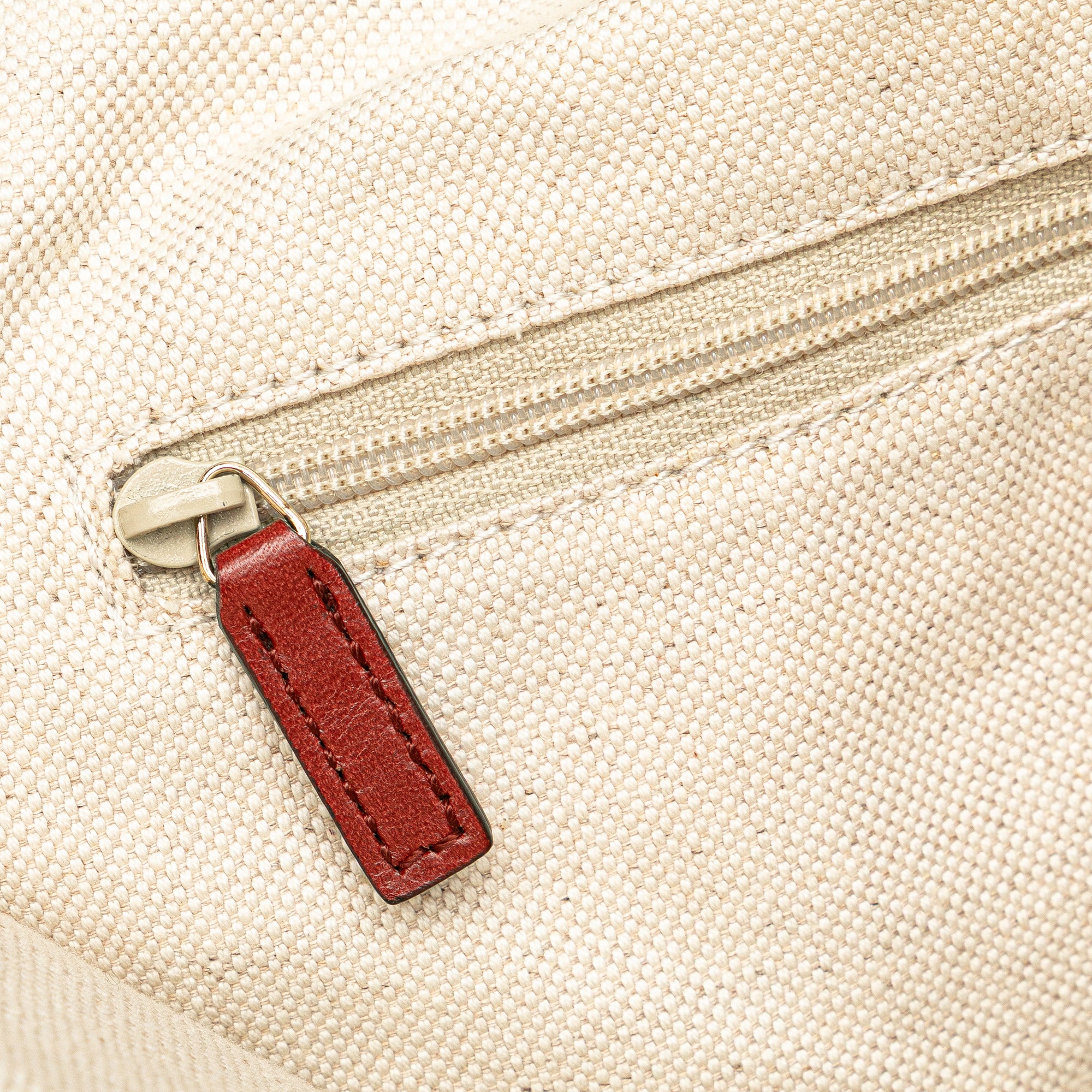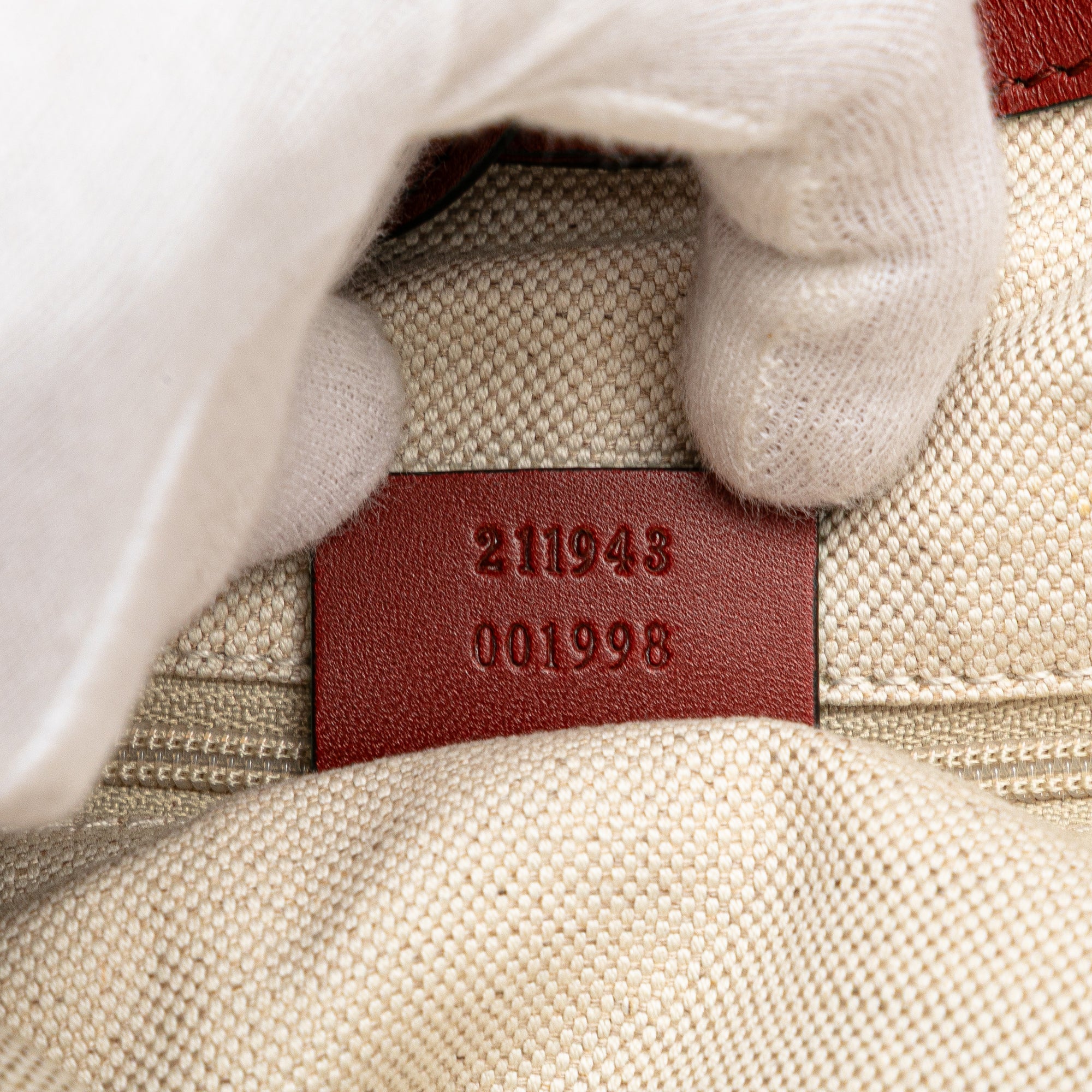 Product Details: Brown Gucci Large GG Canvas Sukey Tote. The Sukey tote bag features a canvas body with leather trim, rolled leather handles, an open top with magnetic closure, and an interior zip pocket. 15.4" L x 16.5" W x 5.5" D. Serial number 211943 001998.