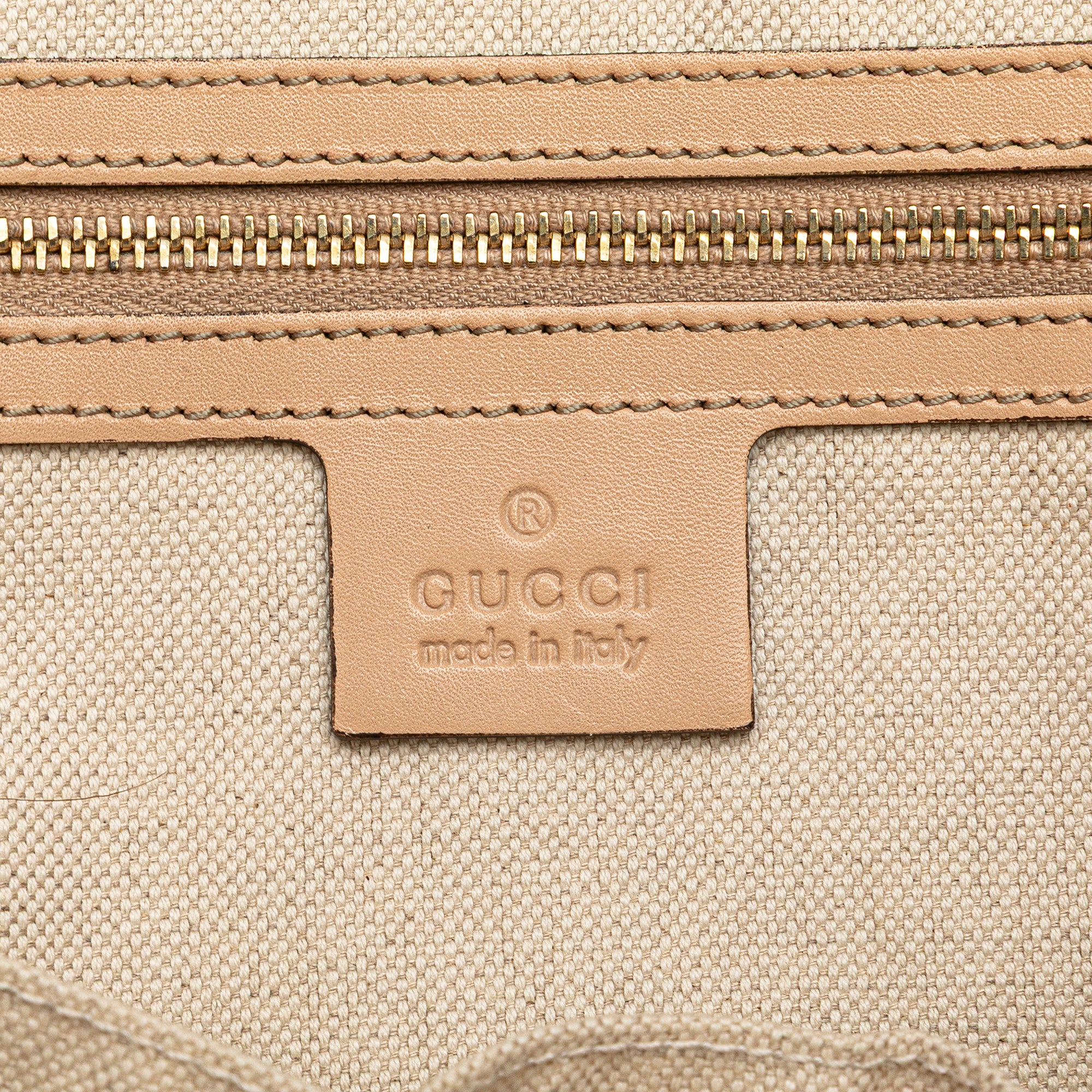 Product Details: Pink Gucci GG Canvas Lovely Tote. The Lovely features a canvas body with leather trim, rolled leather handles, a top zip closure, and interior zip and slip pockets. 9.3" L x 12.6" W x 5.1" D, 5.3" drop. Serial number 257069 520980.