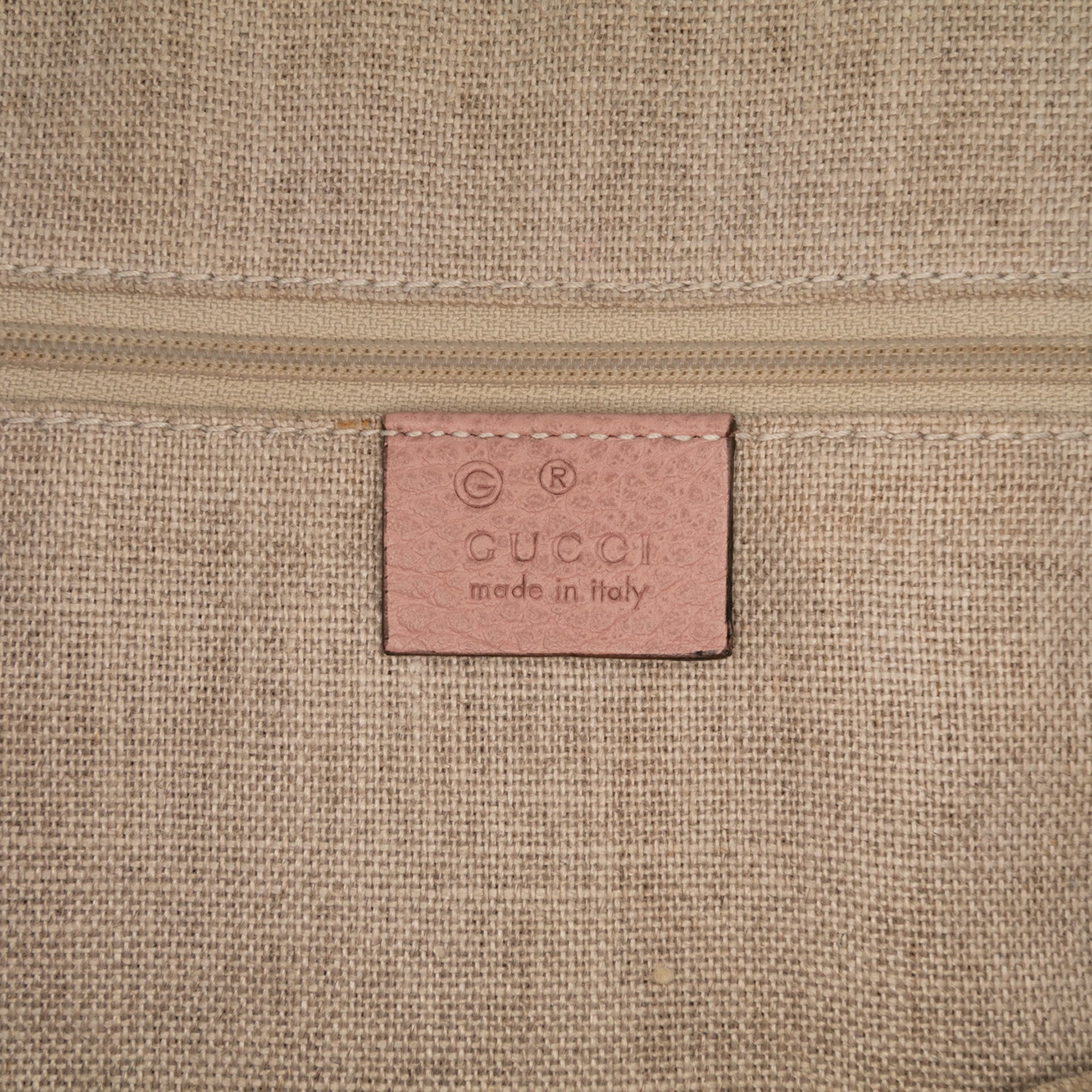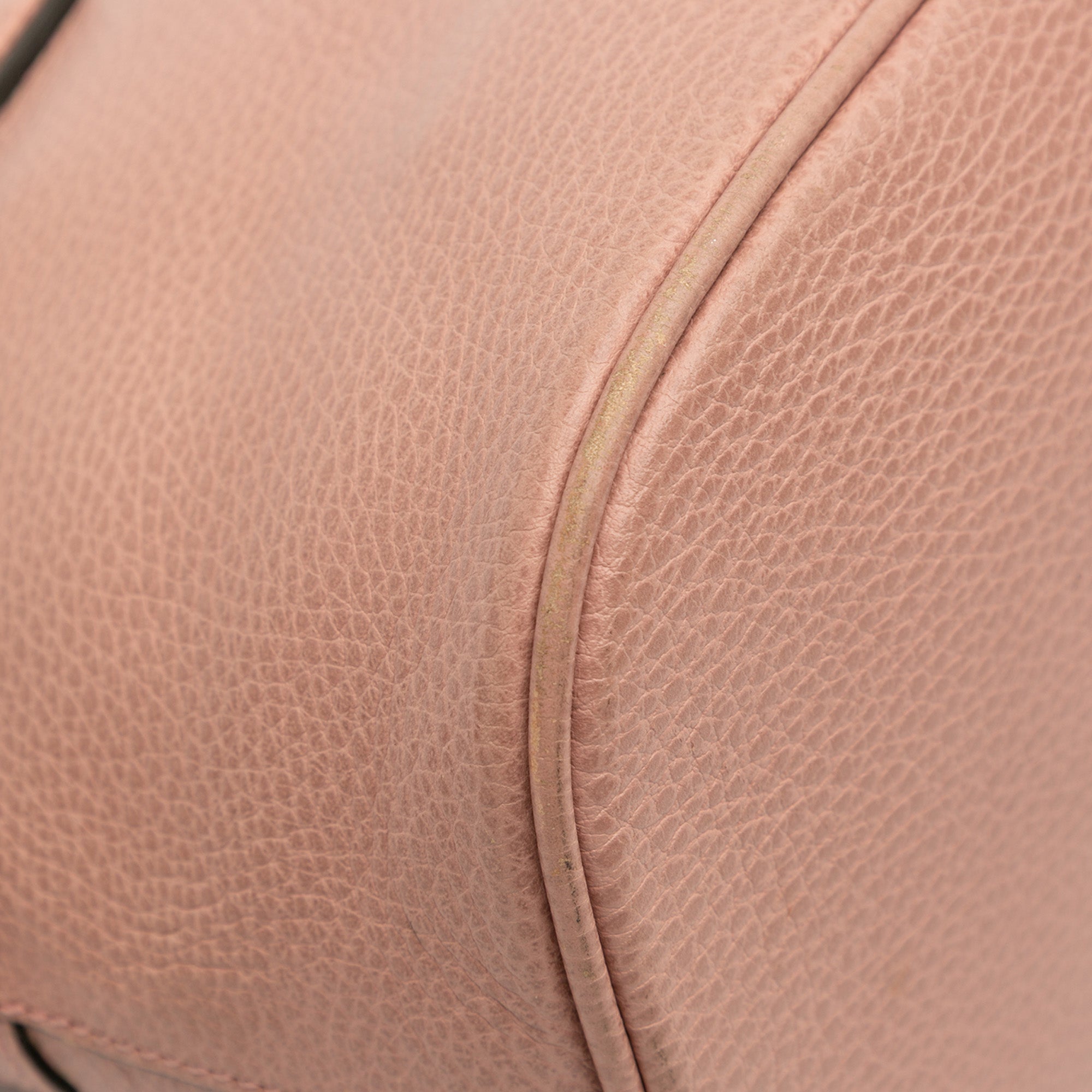 Product Details: Pink Gucci Small Dollar Calfskin GG Charm Dome Satchel. This satchel features a calf leather body, rolled leather handles, a detachable flat leather strap, a dual zip around closure, and an interior zip and slip pockets. 9.1" L x 12.2" W x 5.9" D, 3.9" drop. Serial number 449662 213317.