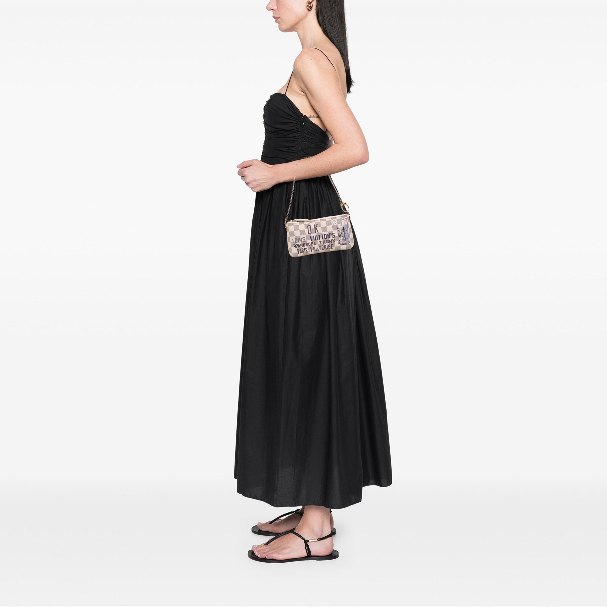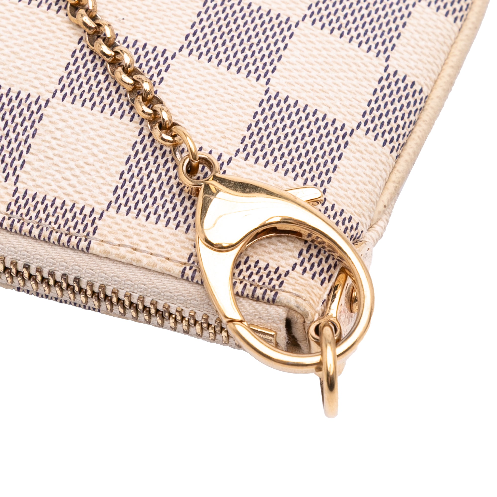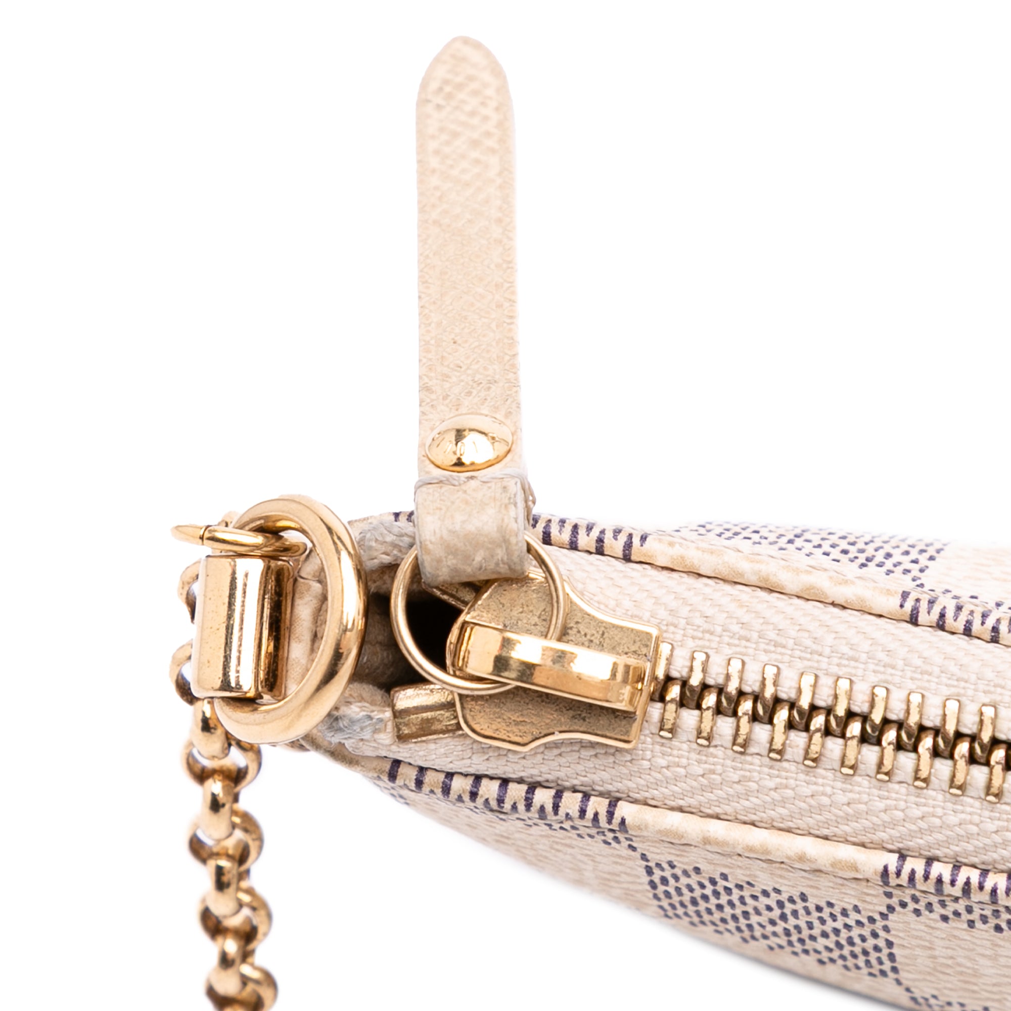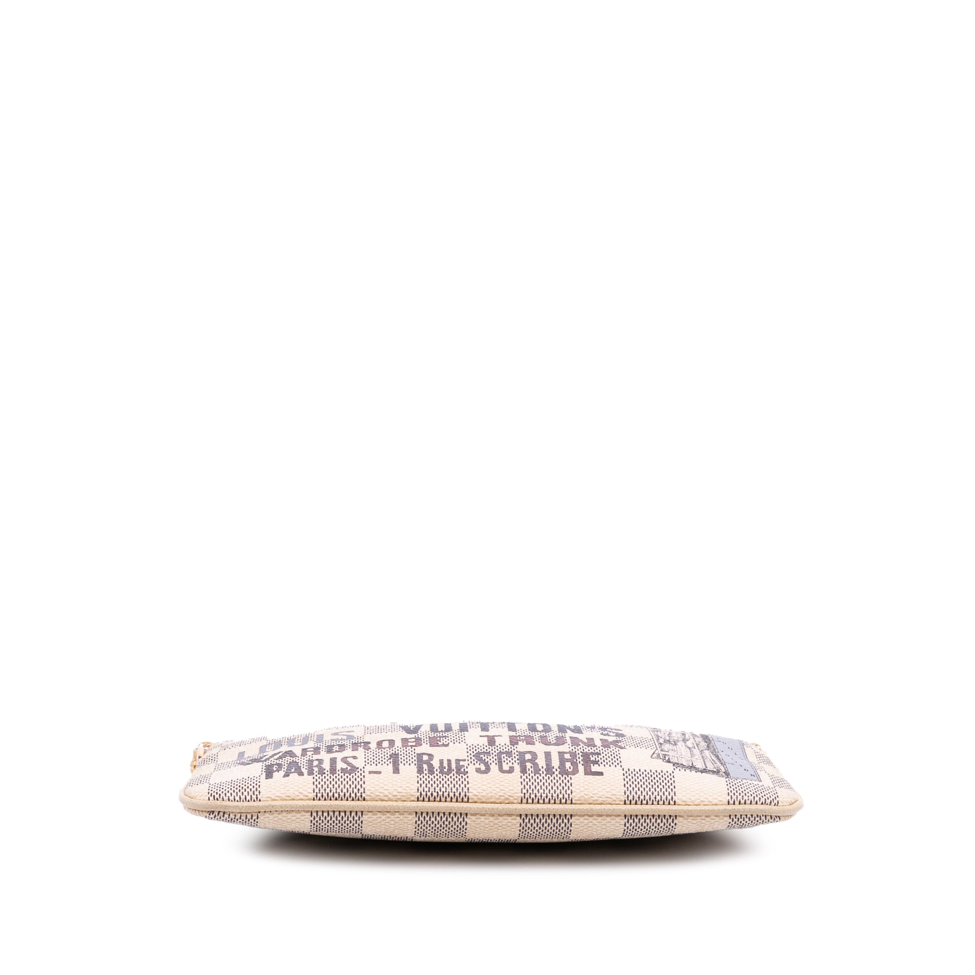 Please note this is a pre-owned item that may display signs of wear consistent with the condition listed above and shown in photos. Designer Revival guarantees this is an authentic White Louis Vuitton Damier Azur Trunks Labels Pochette Milla MM Handbag or 100% of your money back. Learn more about our authentication process.