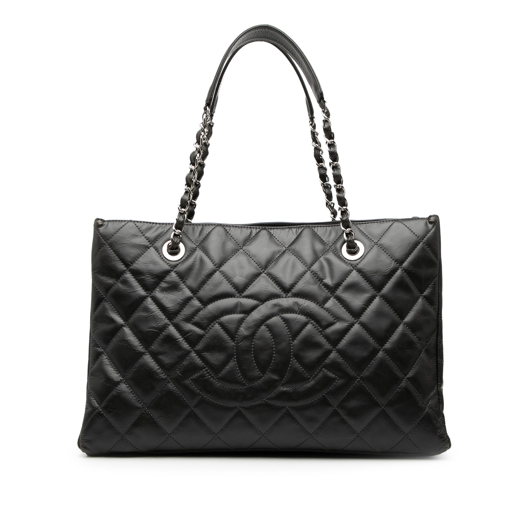 Black Chanel CC Crinkled Calfskin Chain Shopping Tote