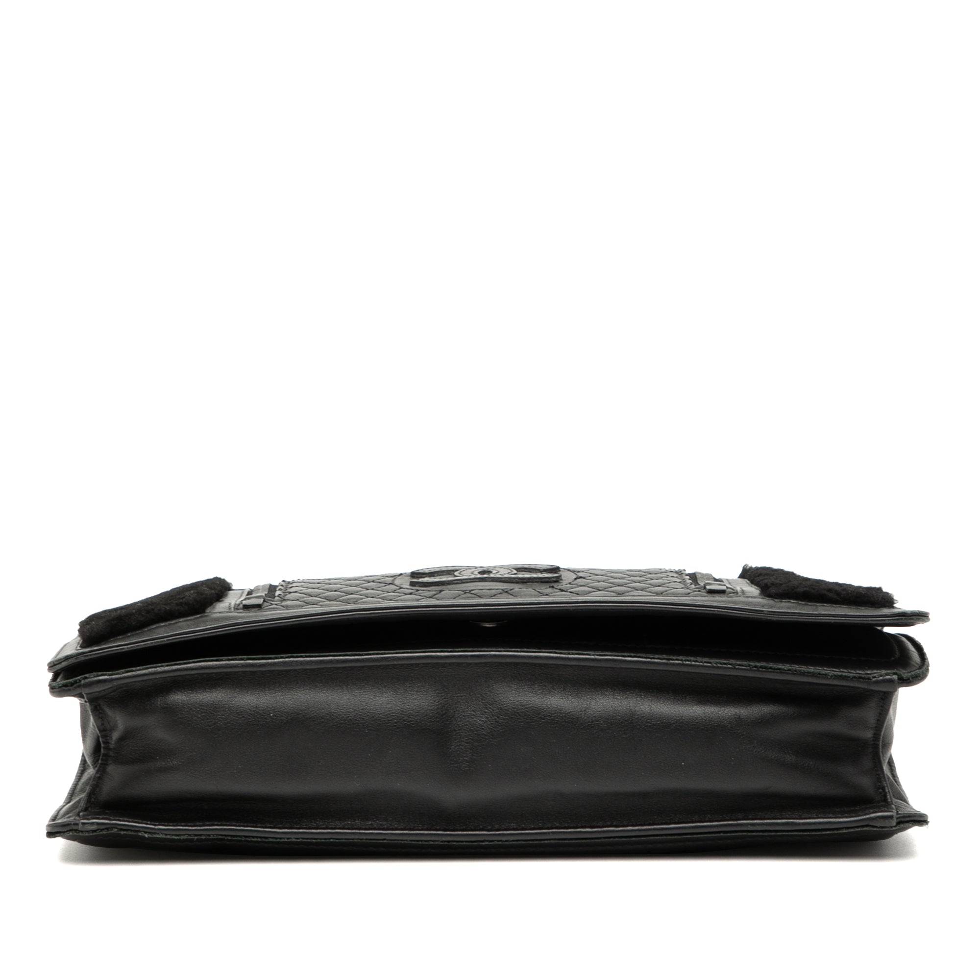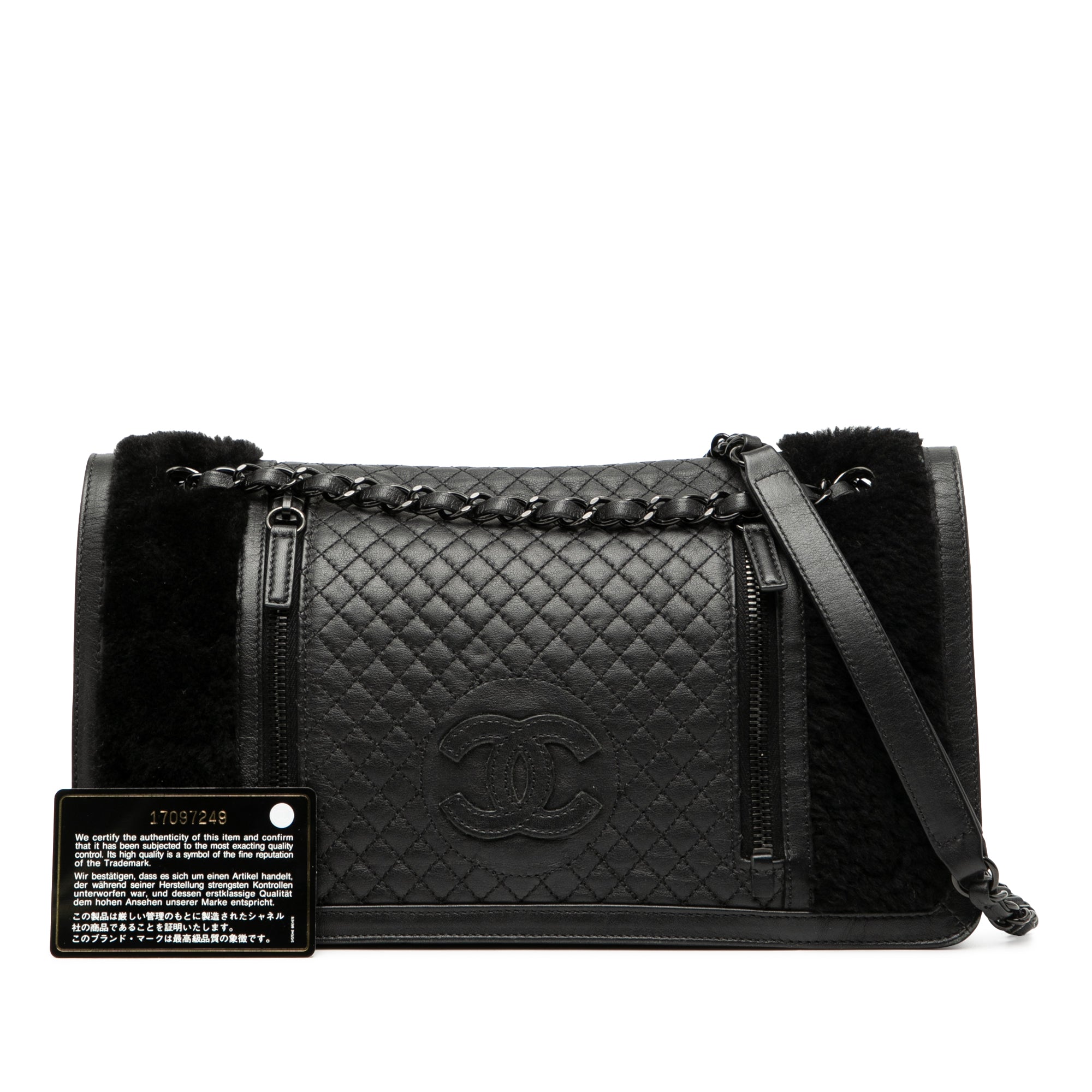 Black Chanel Large CC Quilted Lambskin and Shearling Single Flap Shoulder Bag
