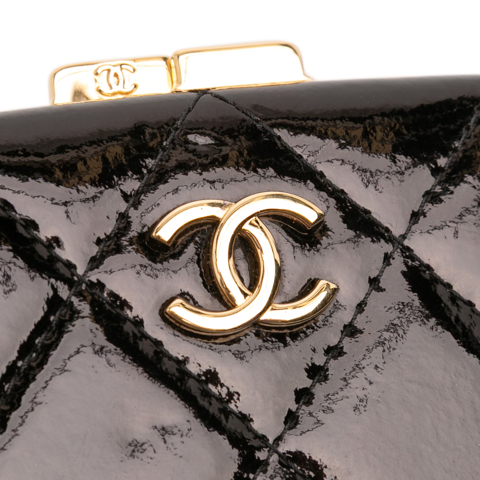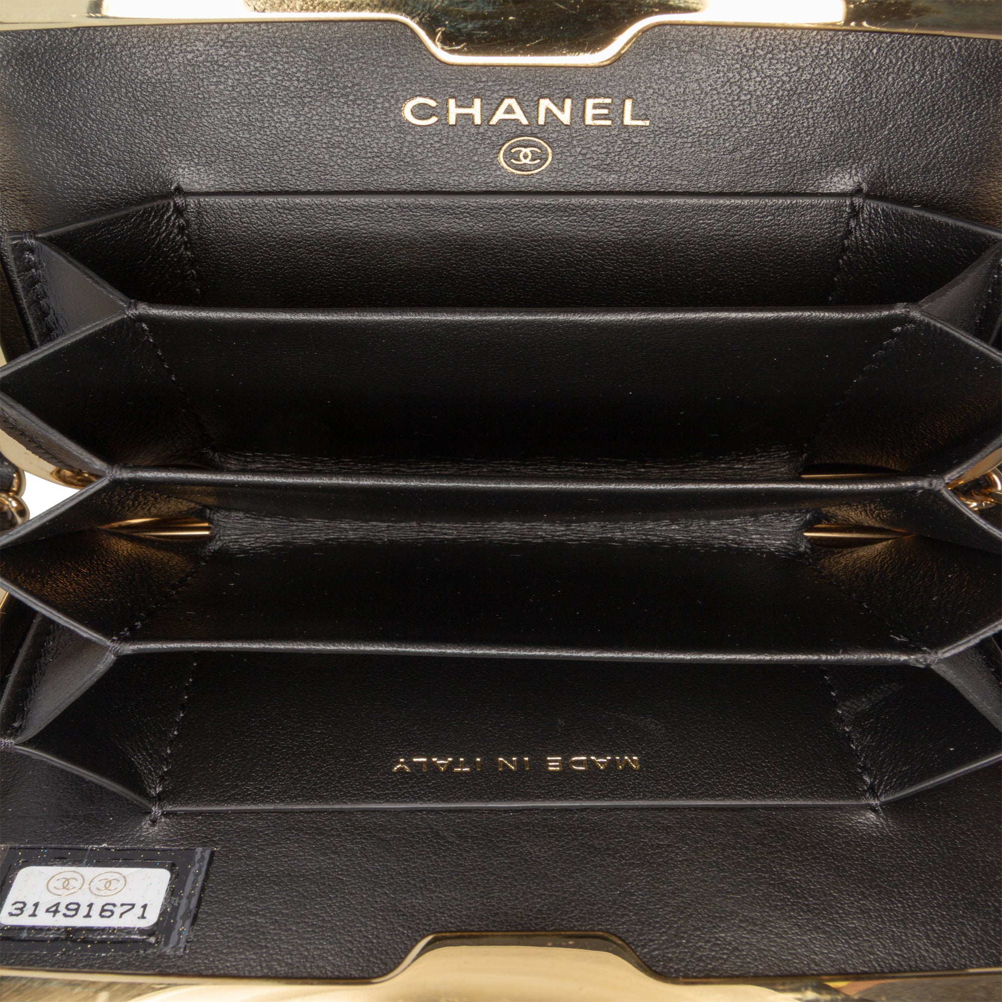 Black Chanel Small Glazed Goatskin Box With Chain Crossbody Bag