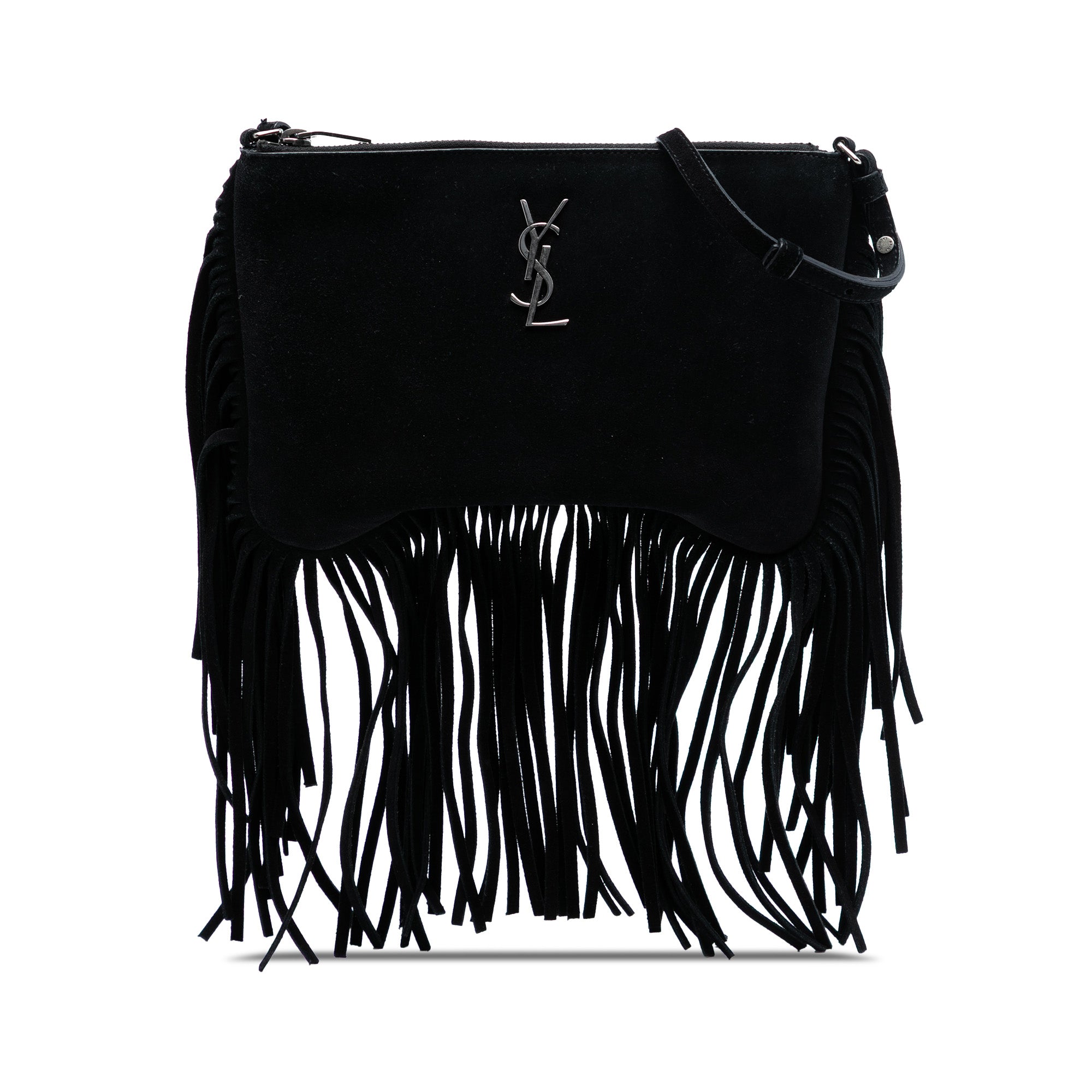 Black Saint Laurent Suede Monogram Fringe Crossbody