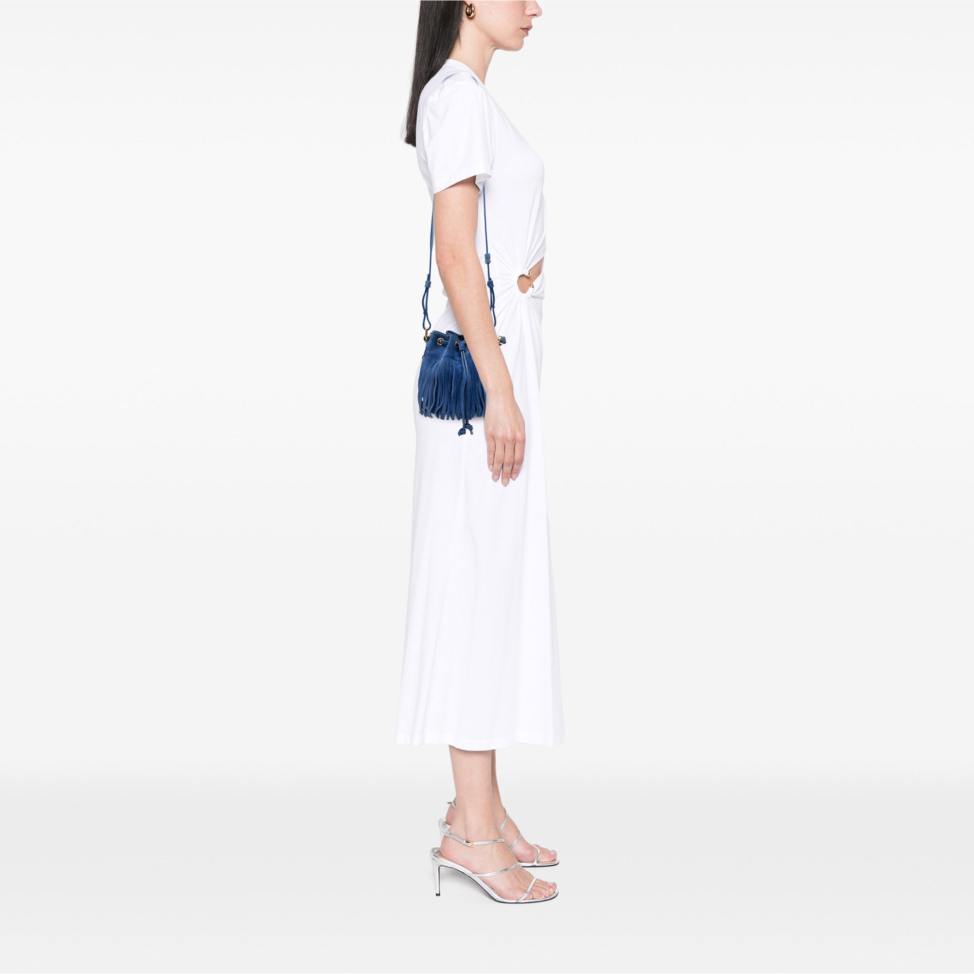 Blue Saint Laurent Small Suede Emmanuelle Fringe Bucket Bag Satchel