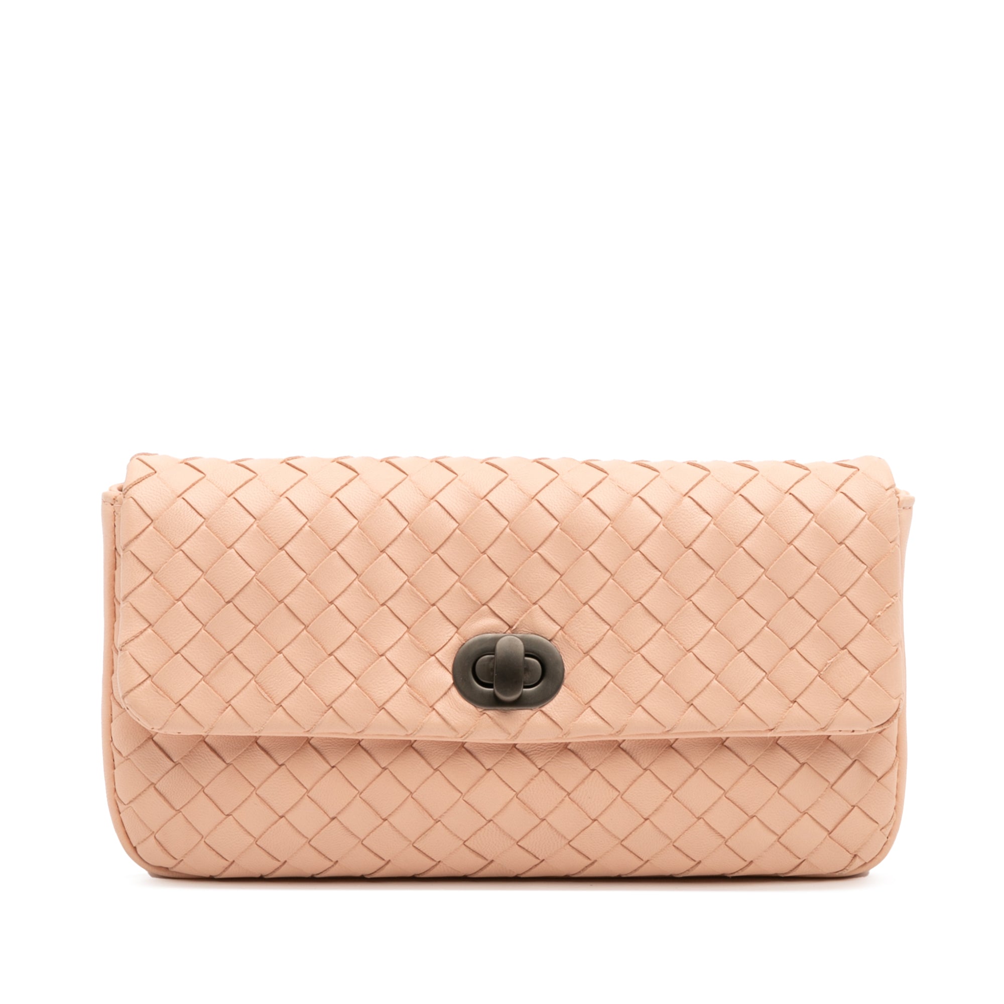 Tan Bottega Veneta Nappa Intrecciato Clutch