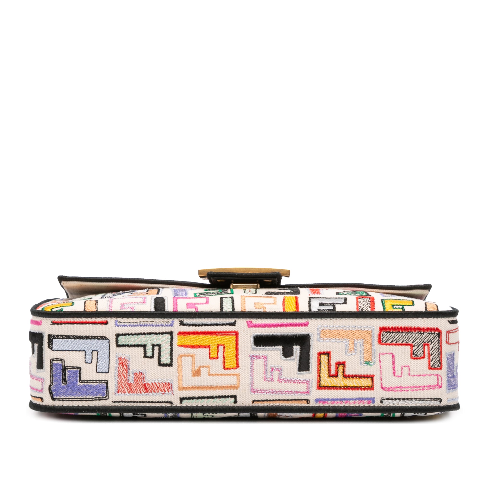 Brown Fendi Chinese Valentines Day Zucca Embroidered Canvas Baguette Satchel