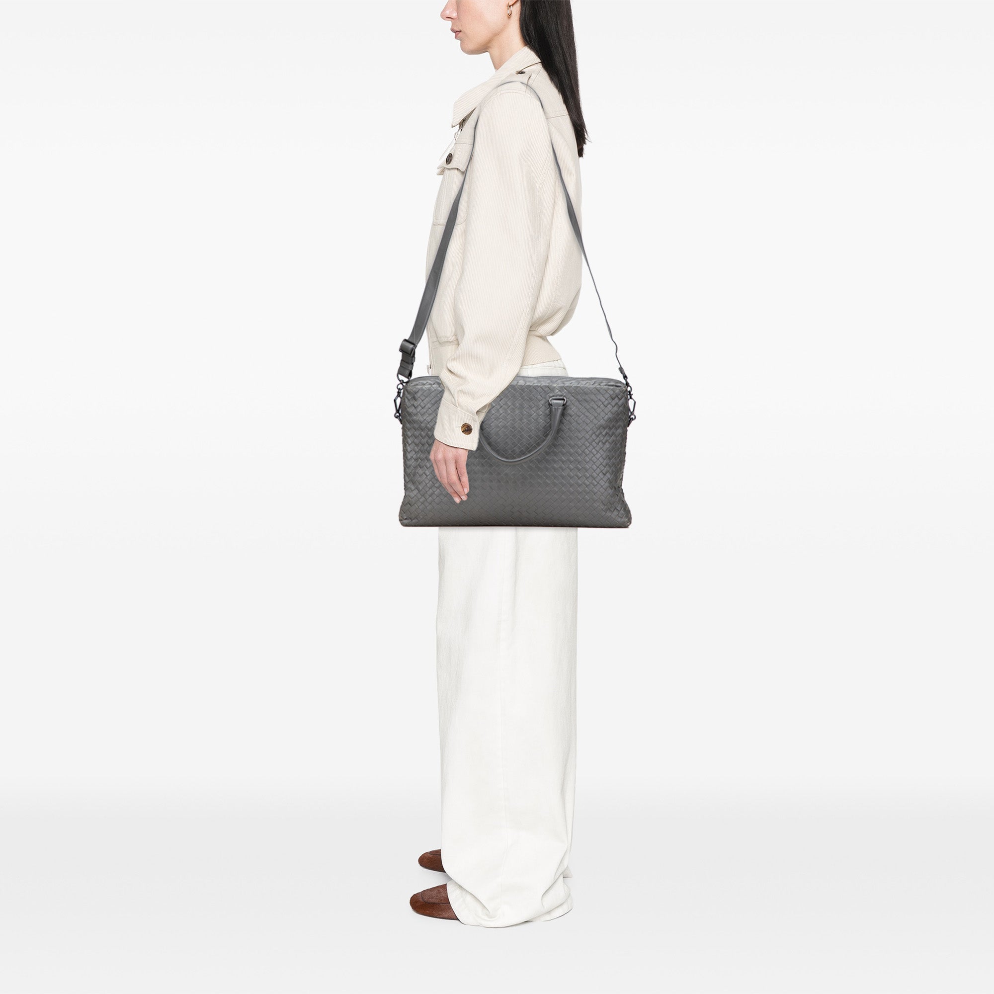 Gray Bottega Veneta Nappa Intrecciato Business Bag