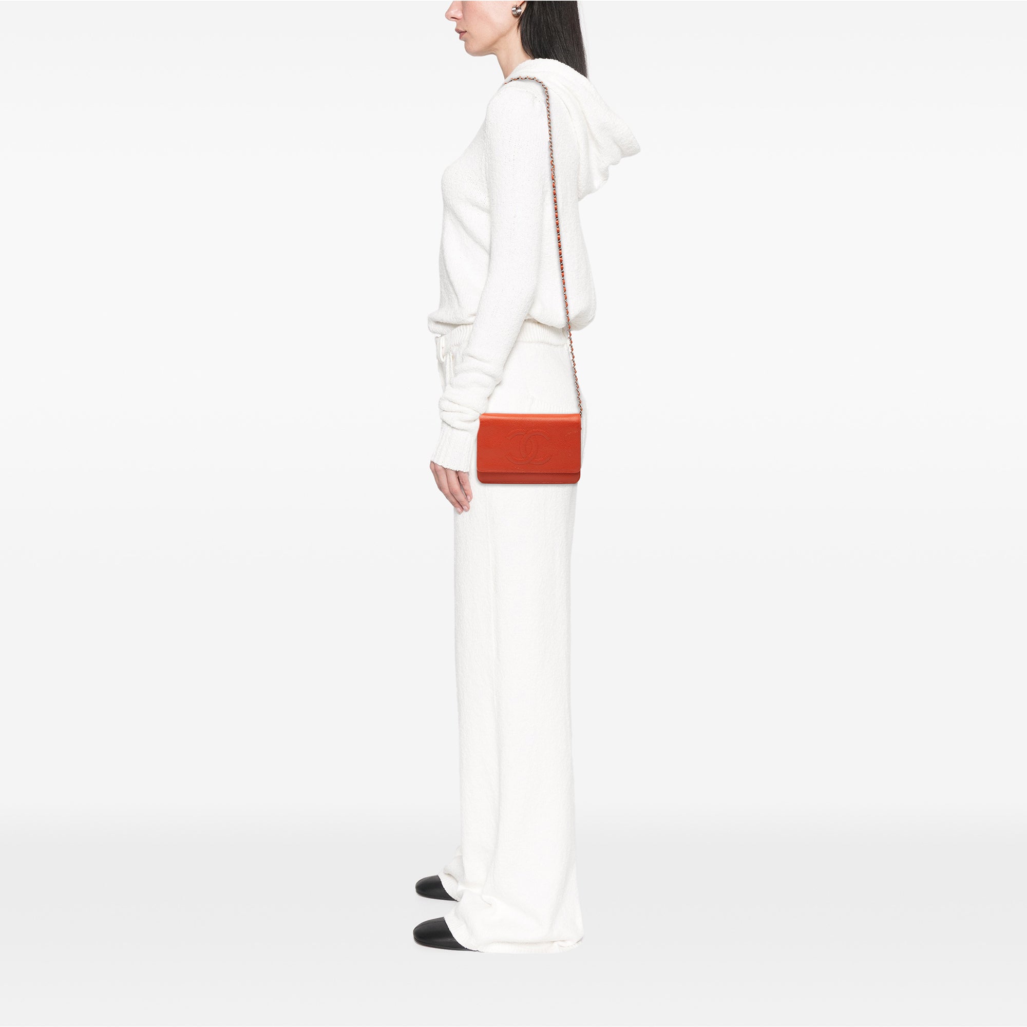 Orange Chanel CC Caviar Wallet On Chain Crossbody Bag