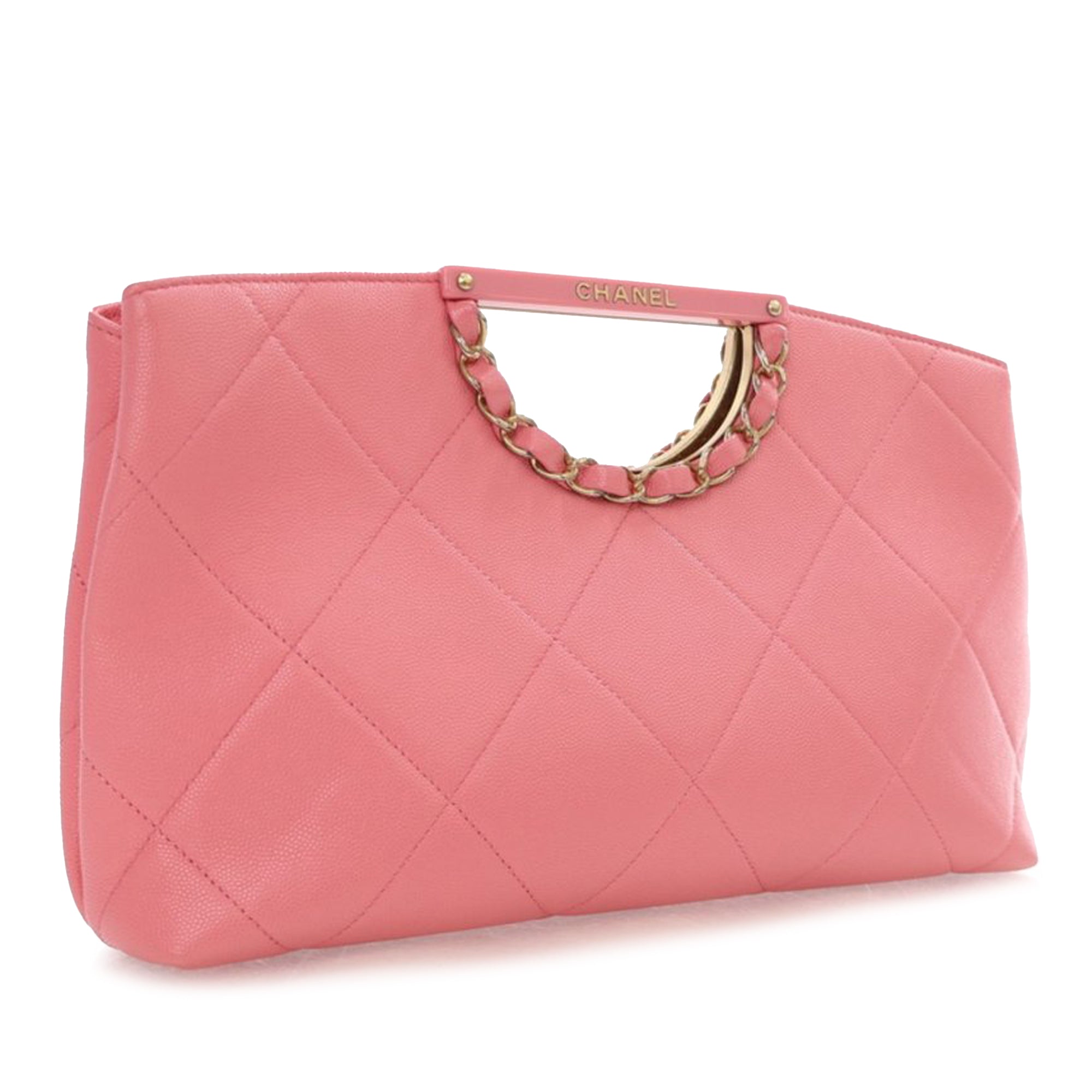 Pink Chanel Quilted Caviar A Real Catch Clutch