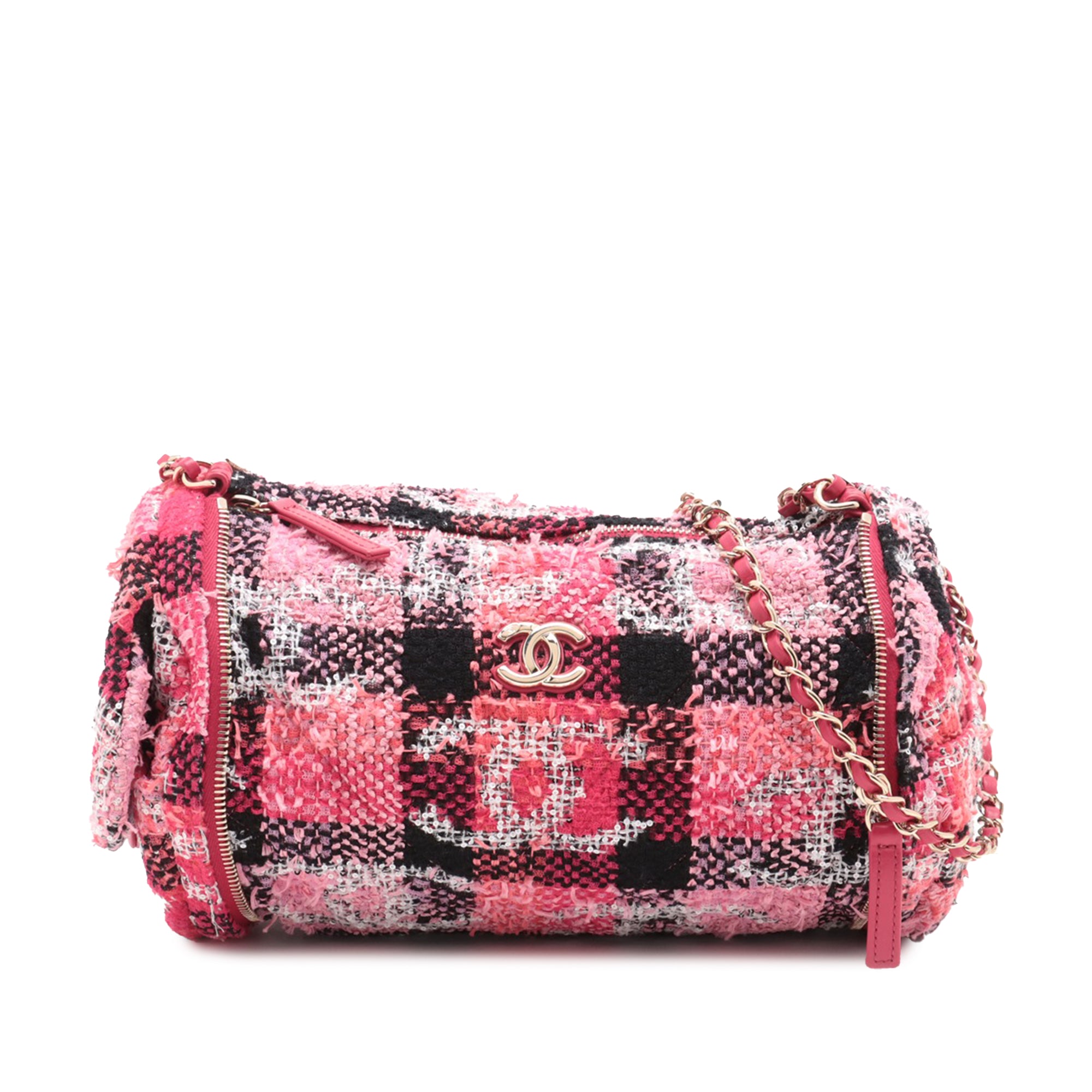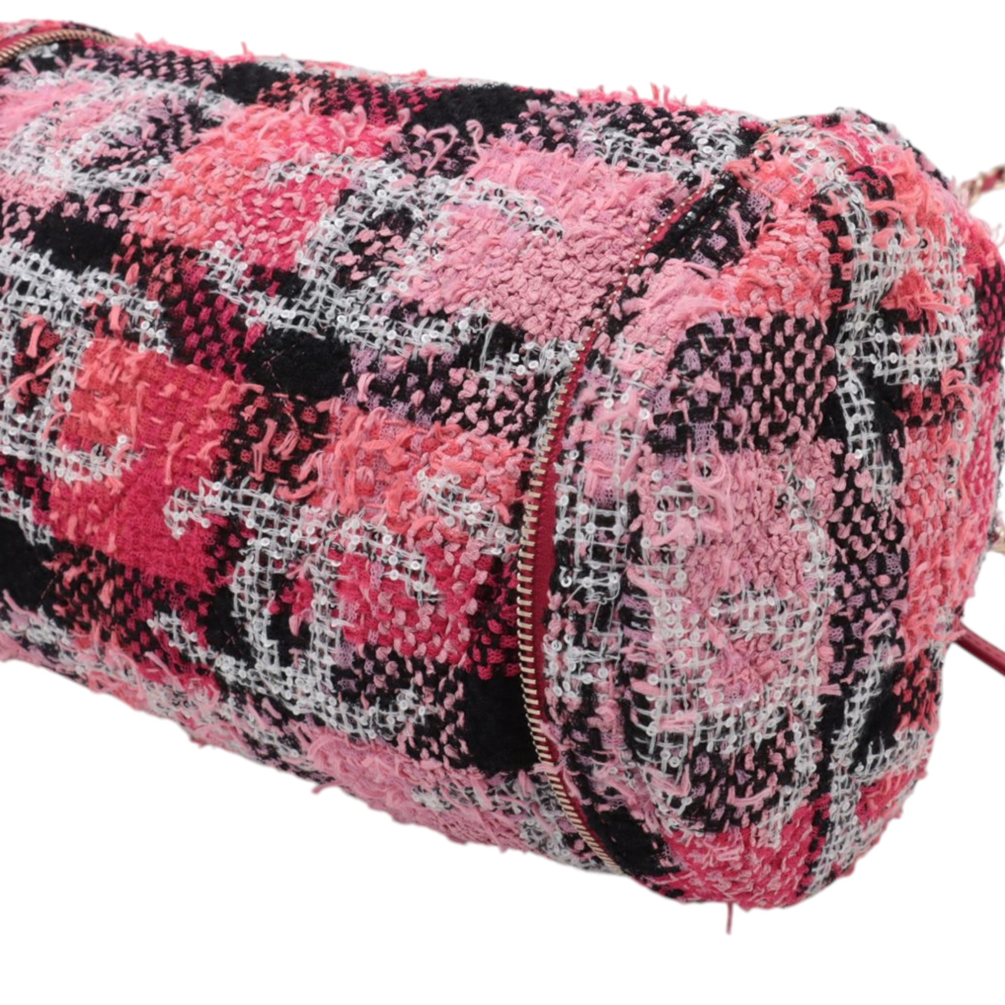 Pink Chanel Tweed Coco Beach Convertible Bowling Bag