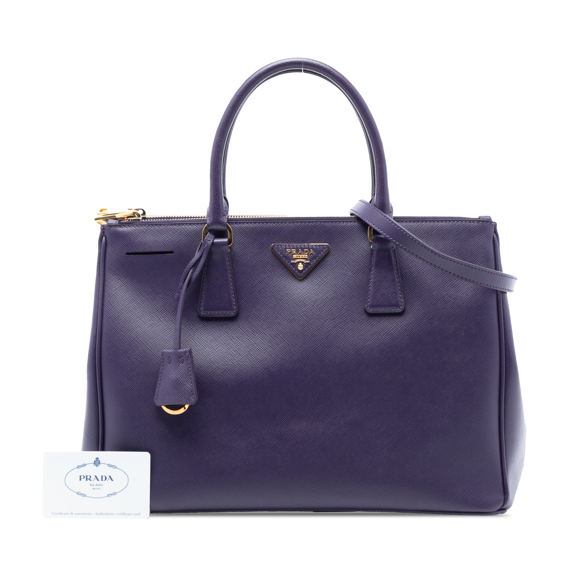 Purple Prada Medium Saffiano Lux Galleria Double Zip Satchel