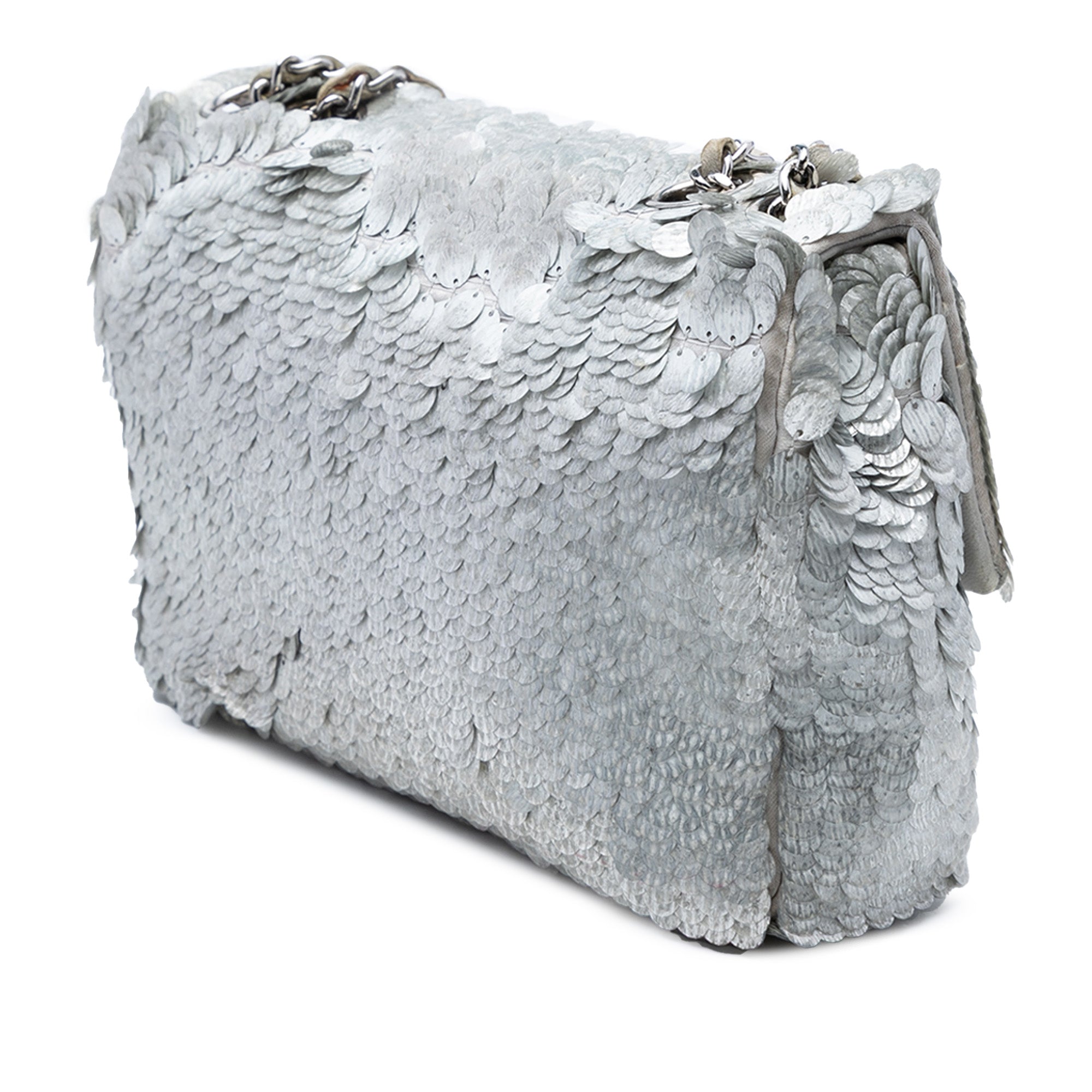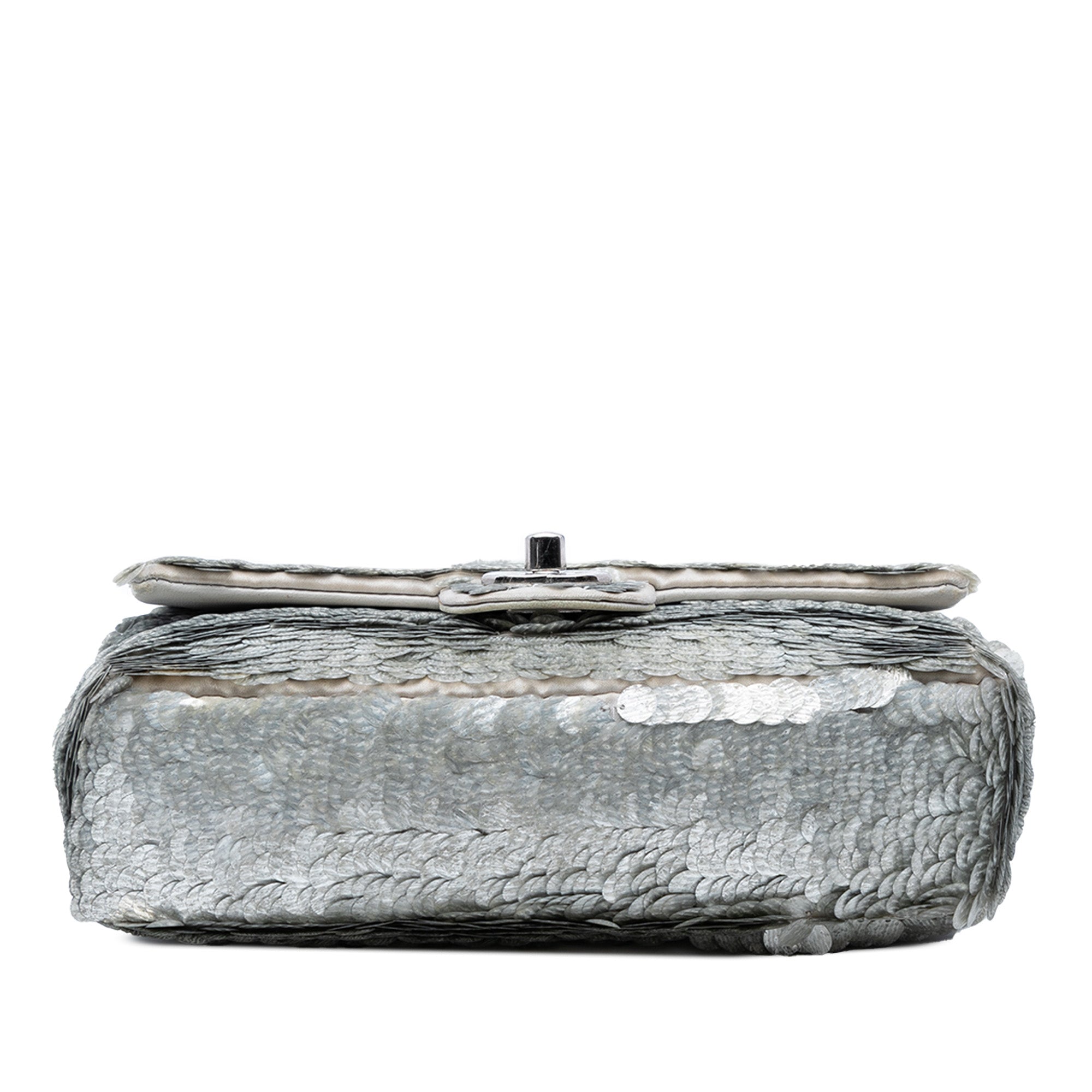 Silver Chanel Small Paillettes Sequin Single Flap Shoulder Bag