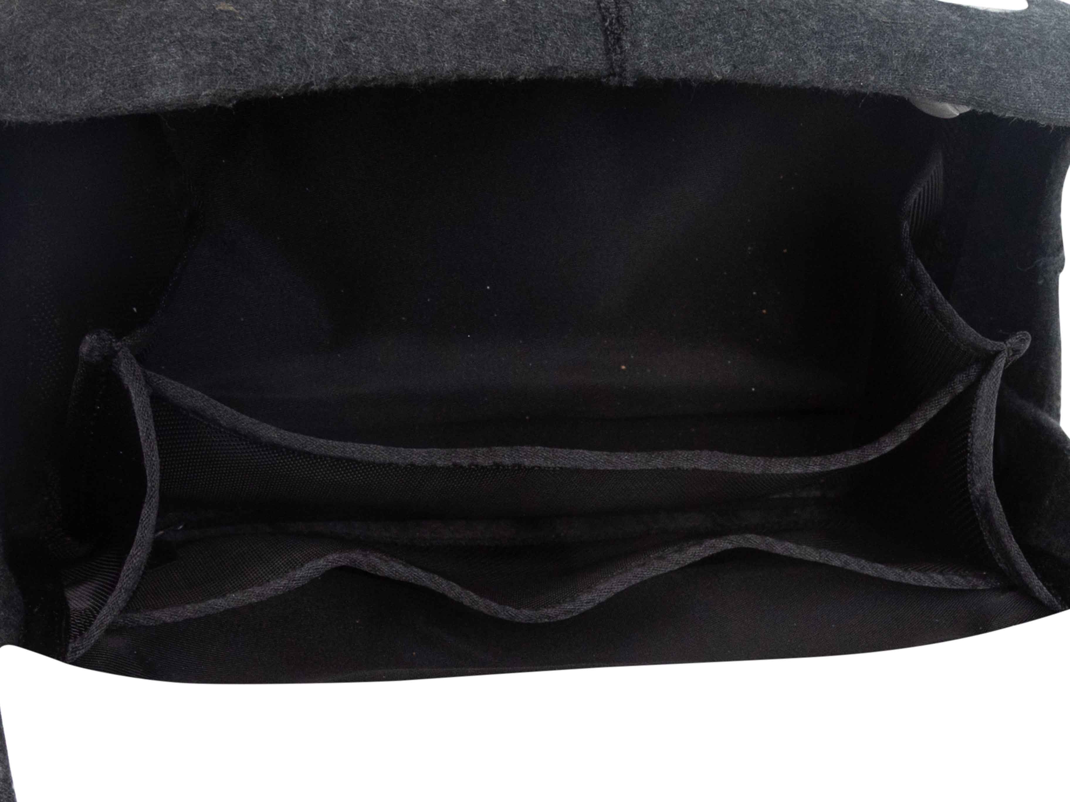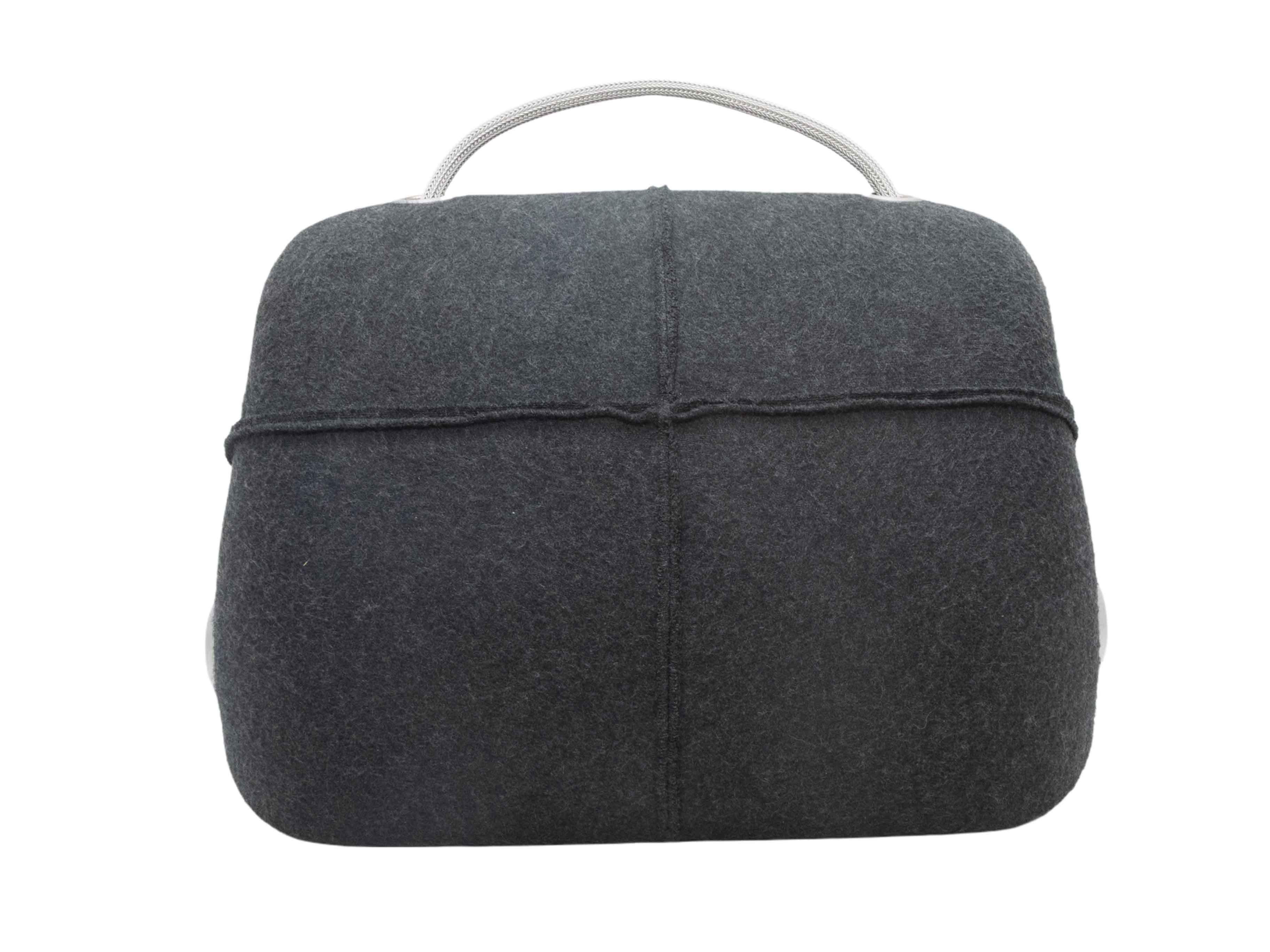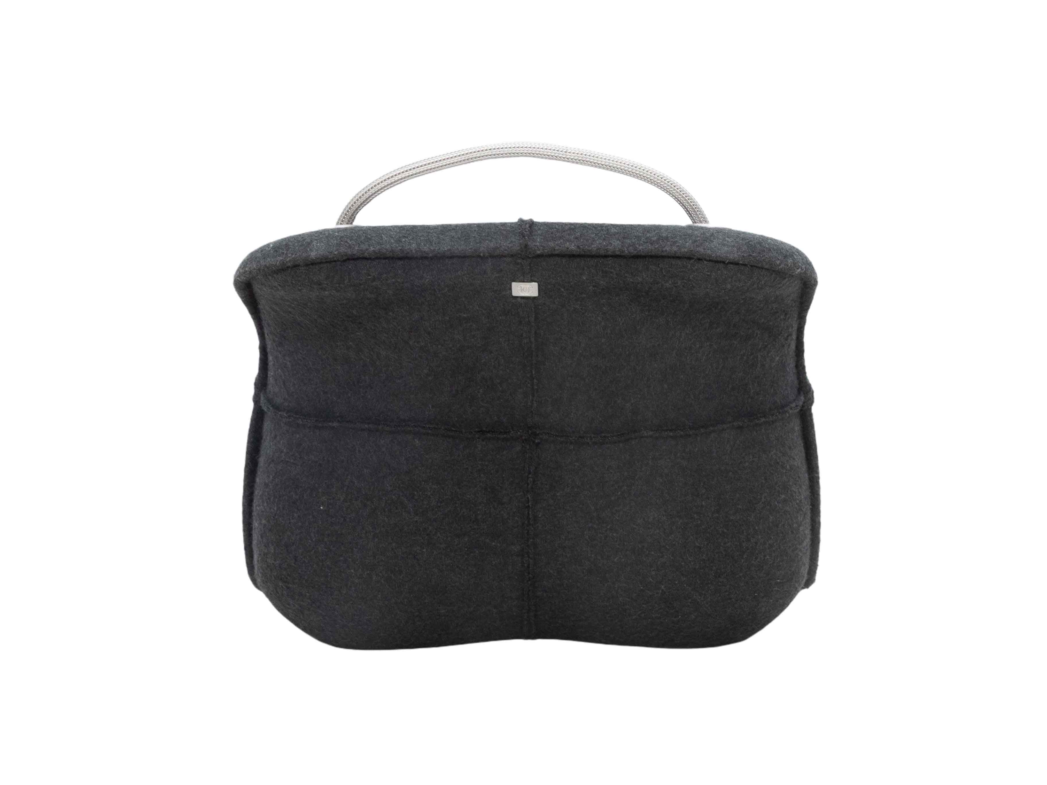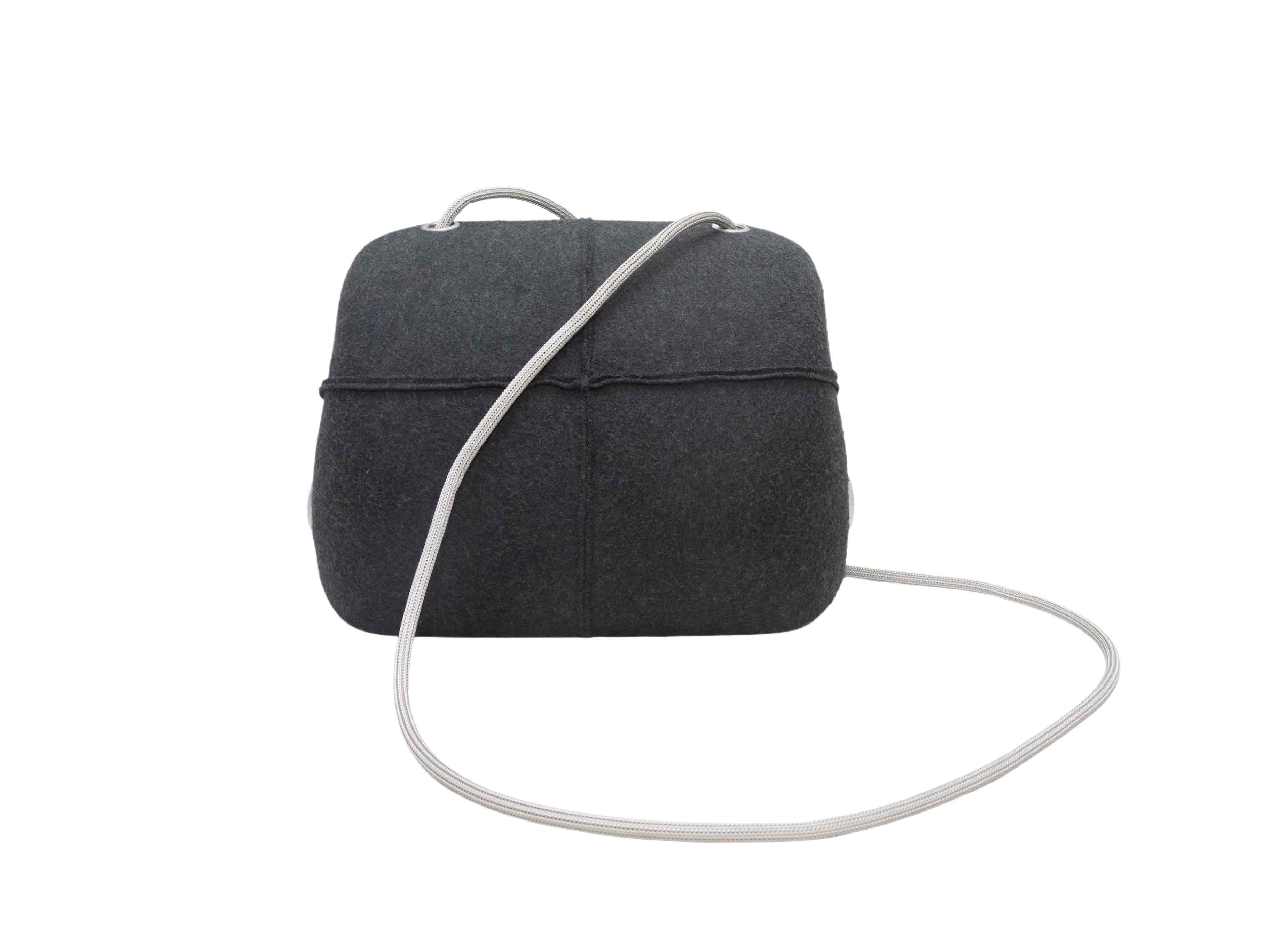 Product Details: Vintage Charcoal Chanel 1999 Millennium Shoulder Bag. The Millennium Shoulder Bag features a textile body and a cord shoulder strap. 8.5" L x 5.5" H x 2.5" D, 21.5" shoulder strap drop.