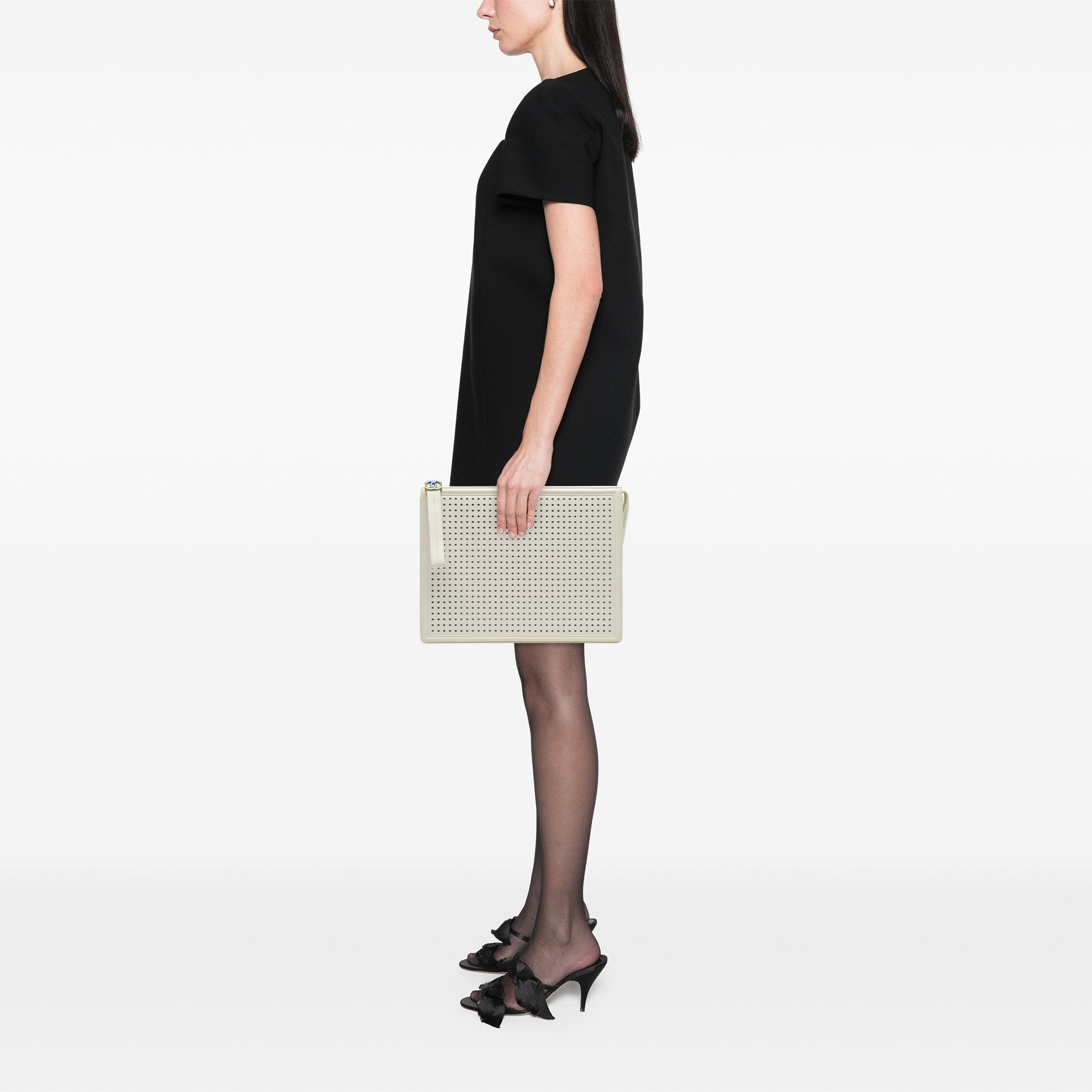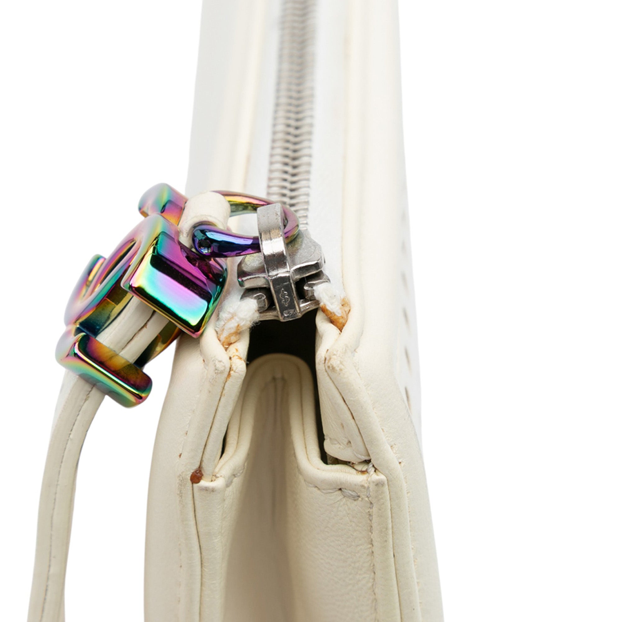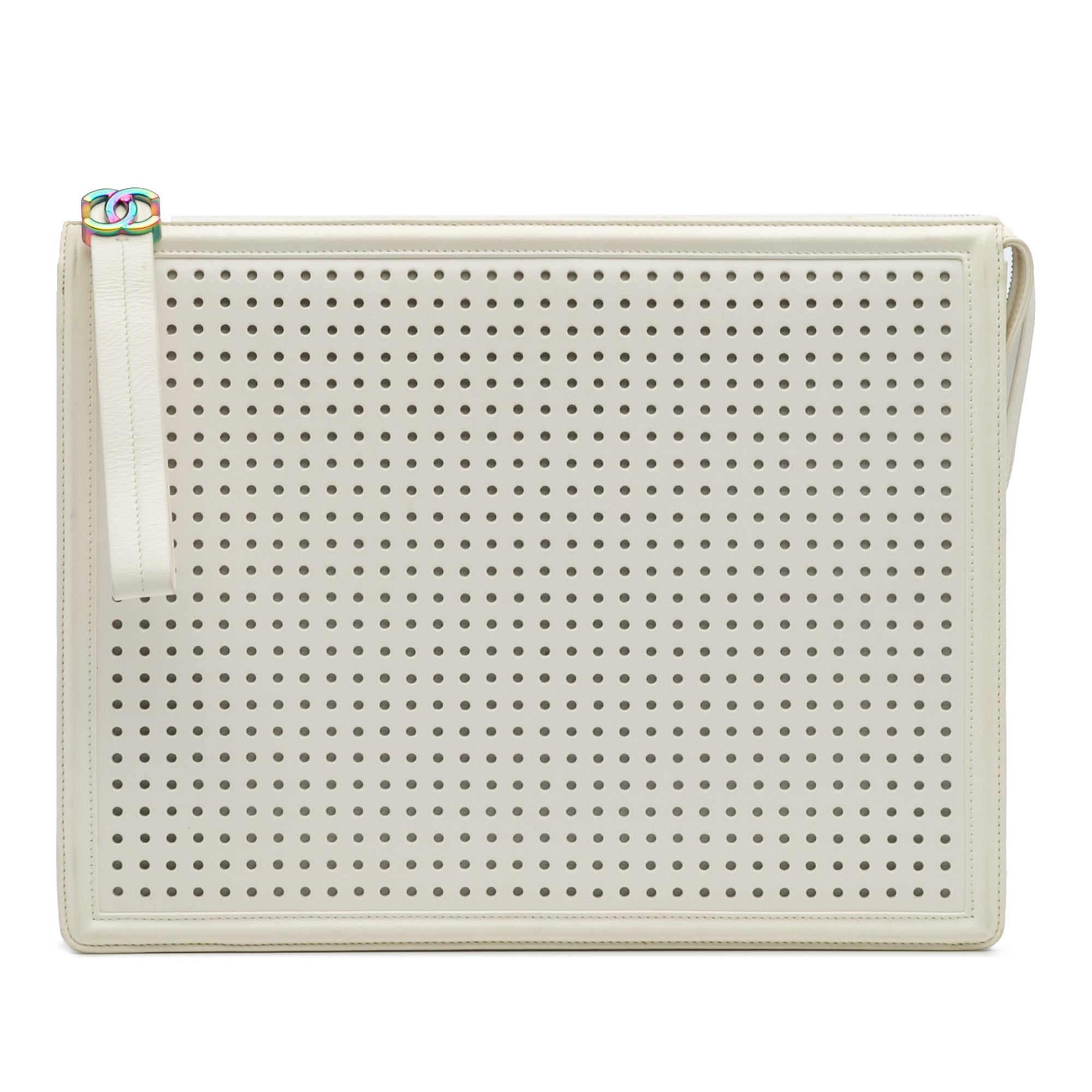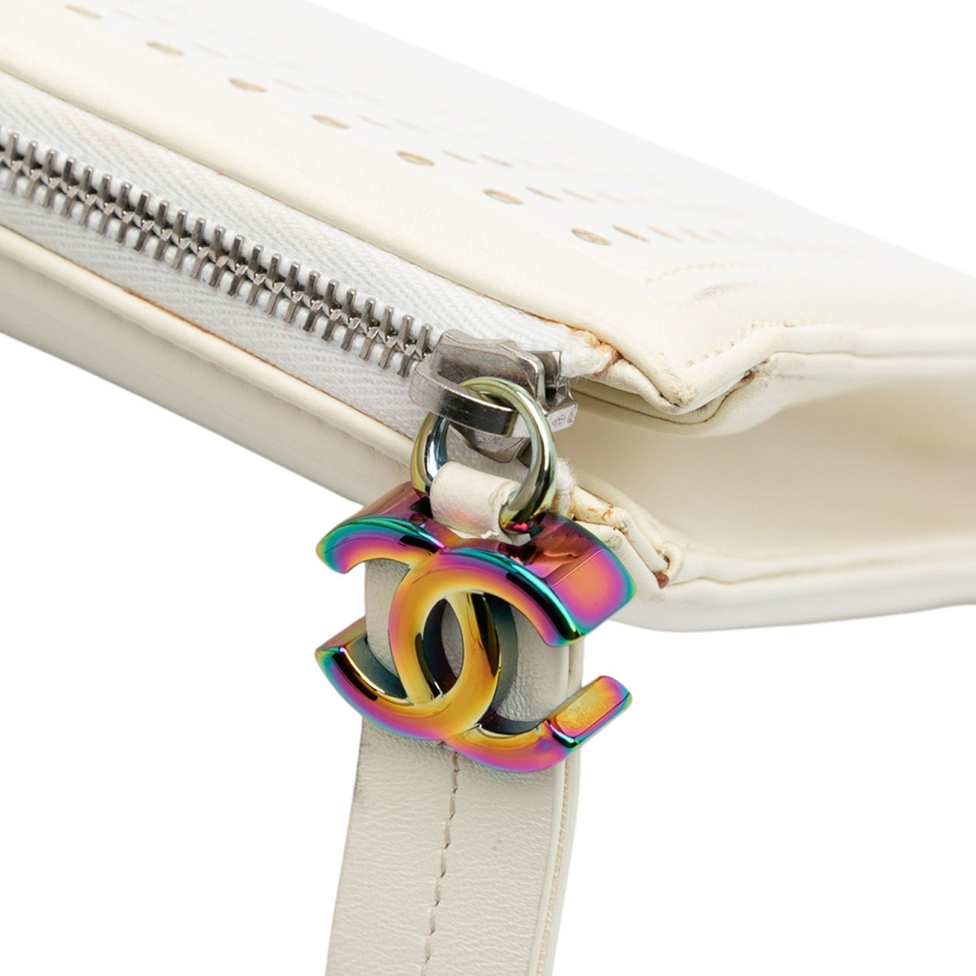 White Chanel CC Perforated Calfskin Portfolio Clutch