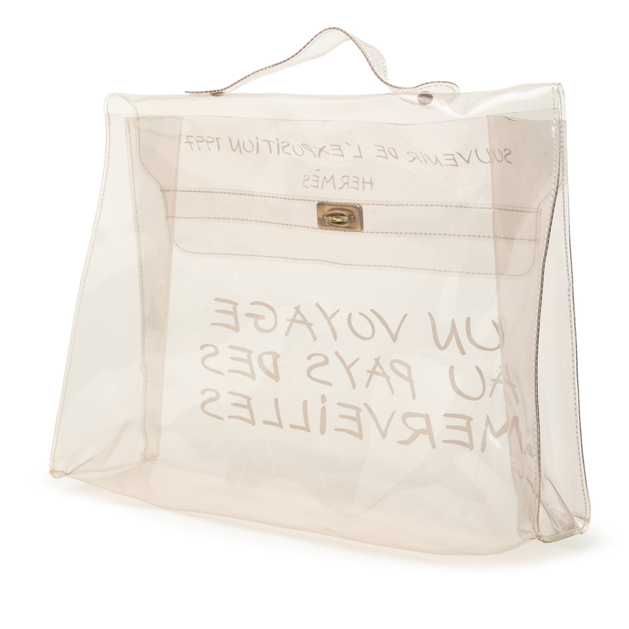 White Hermès Vinyl Souvenir De L Exposition Kelly Handbag