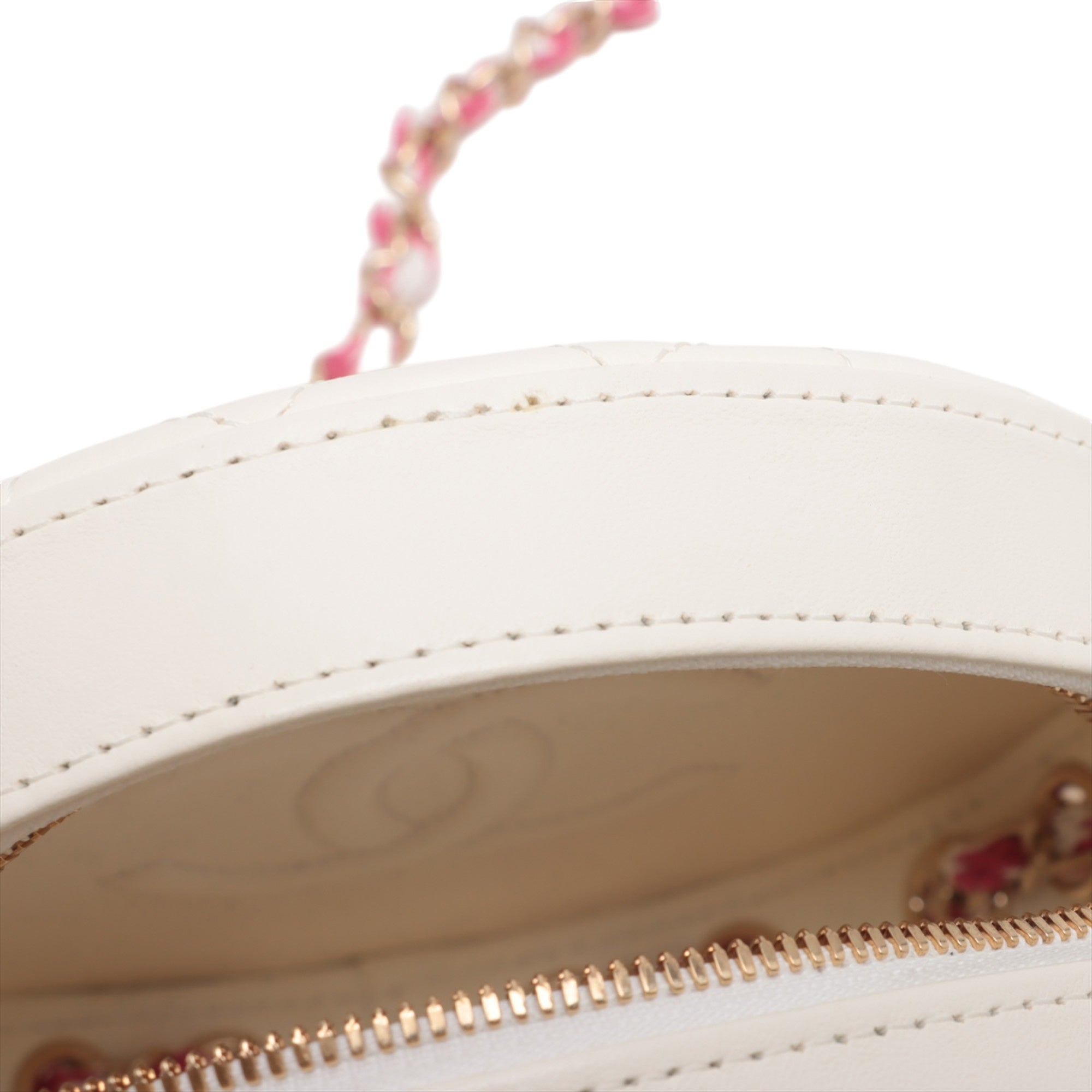 White and Pink Chanel Lambskin La Pausa Coco Lifesaver Round Bag