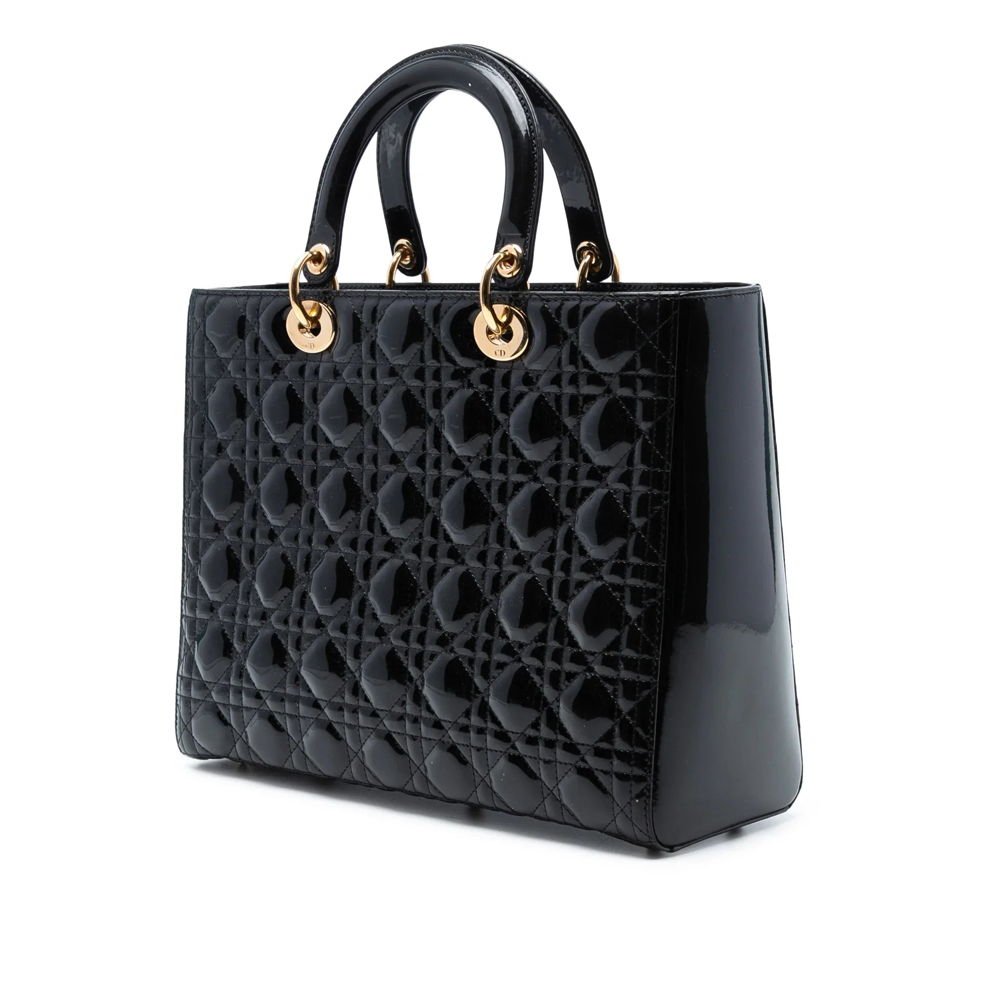 Black Dior Large Patent Cannage Lady Dior Satchel