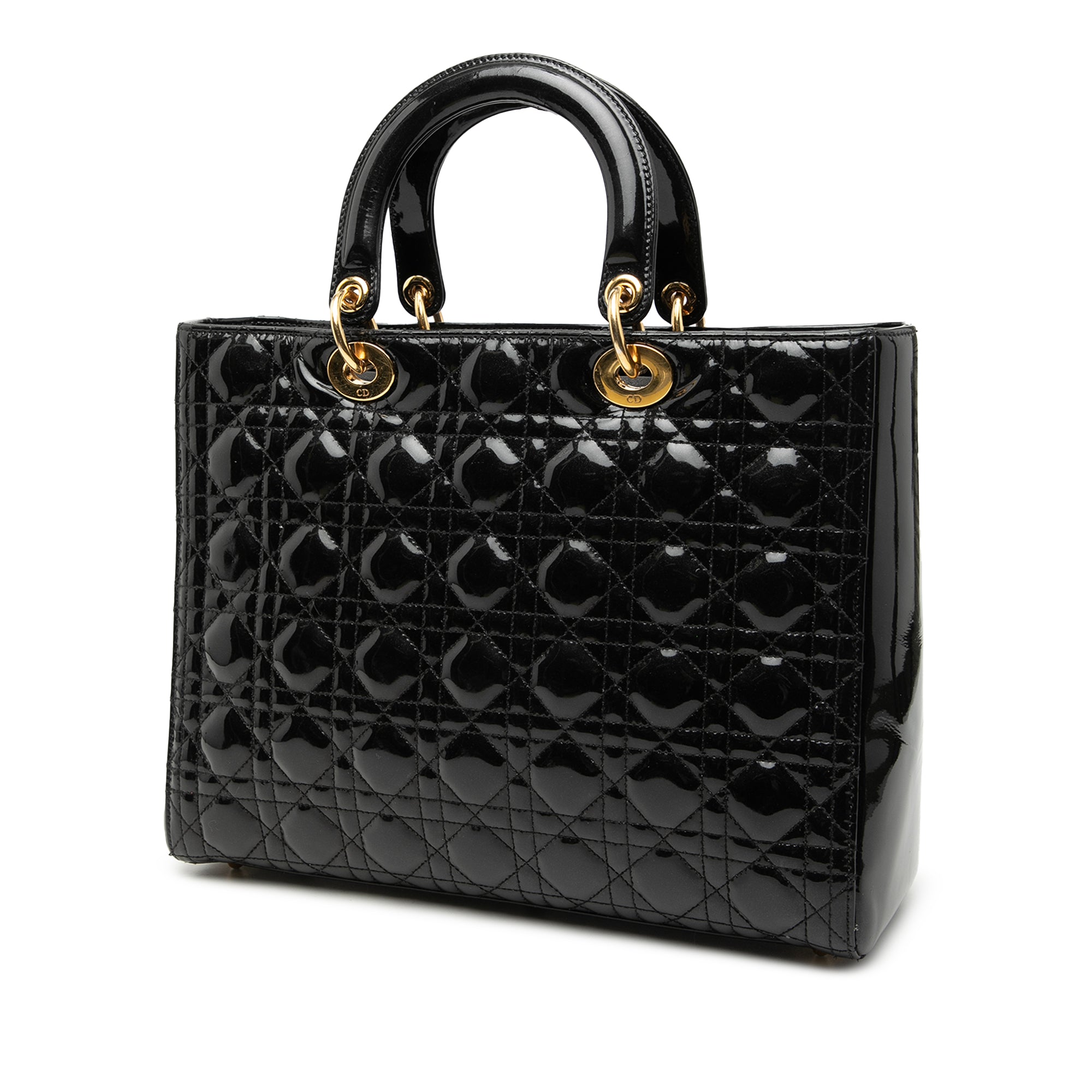 Black Dior Large Patent Cannage Lady Dior Satchel