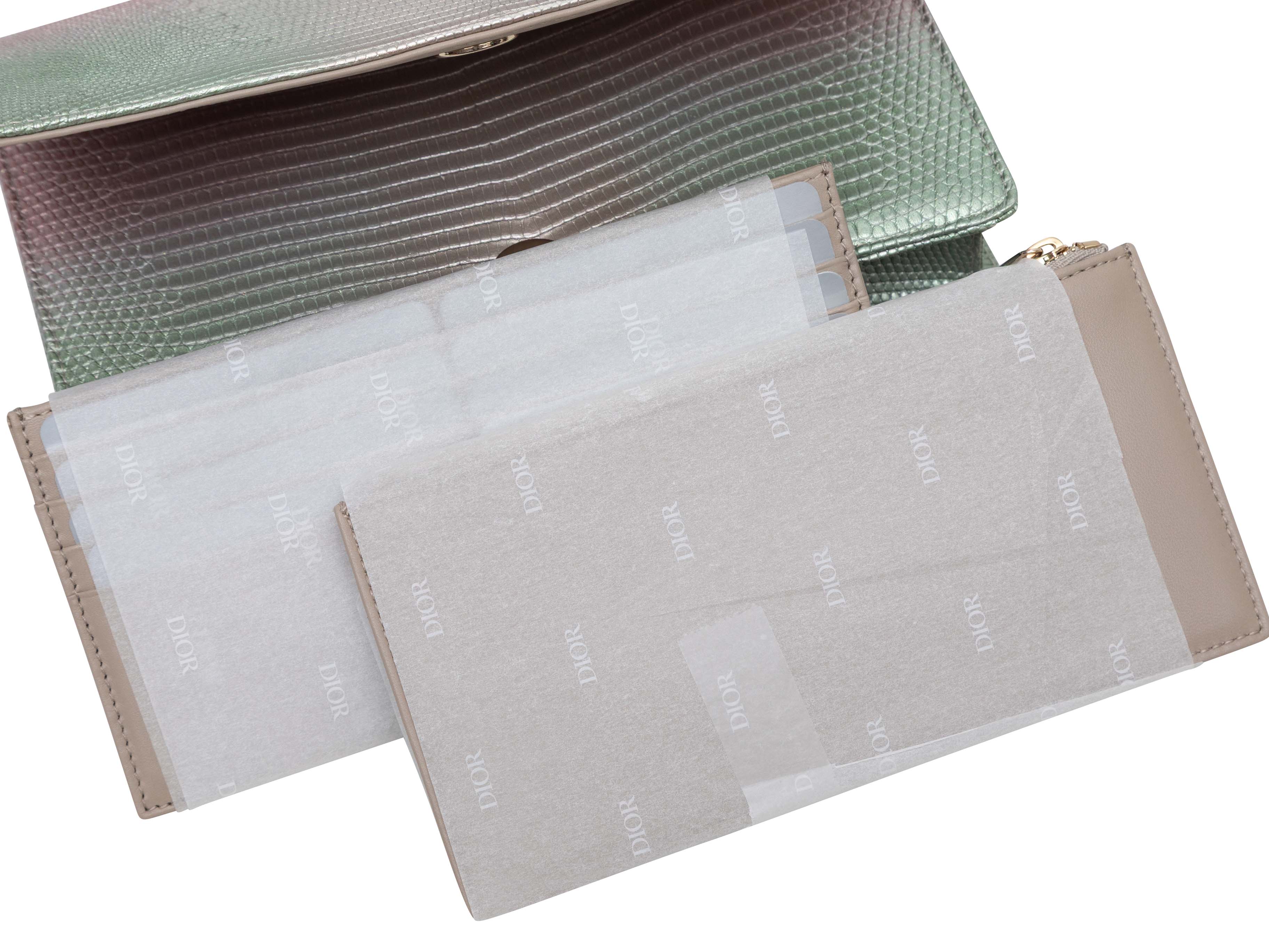 Light Pink & Green Christian Dior 2022 Ombre Lizard Clutch-On-Chain