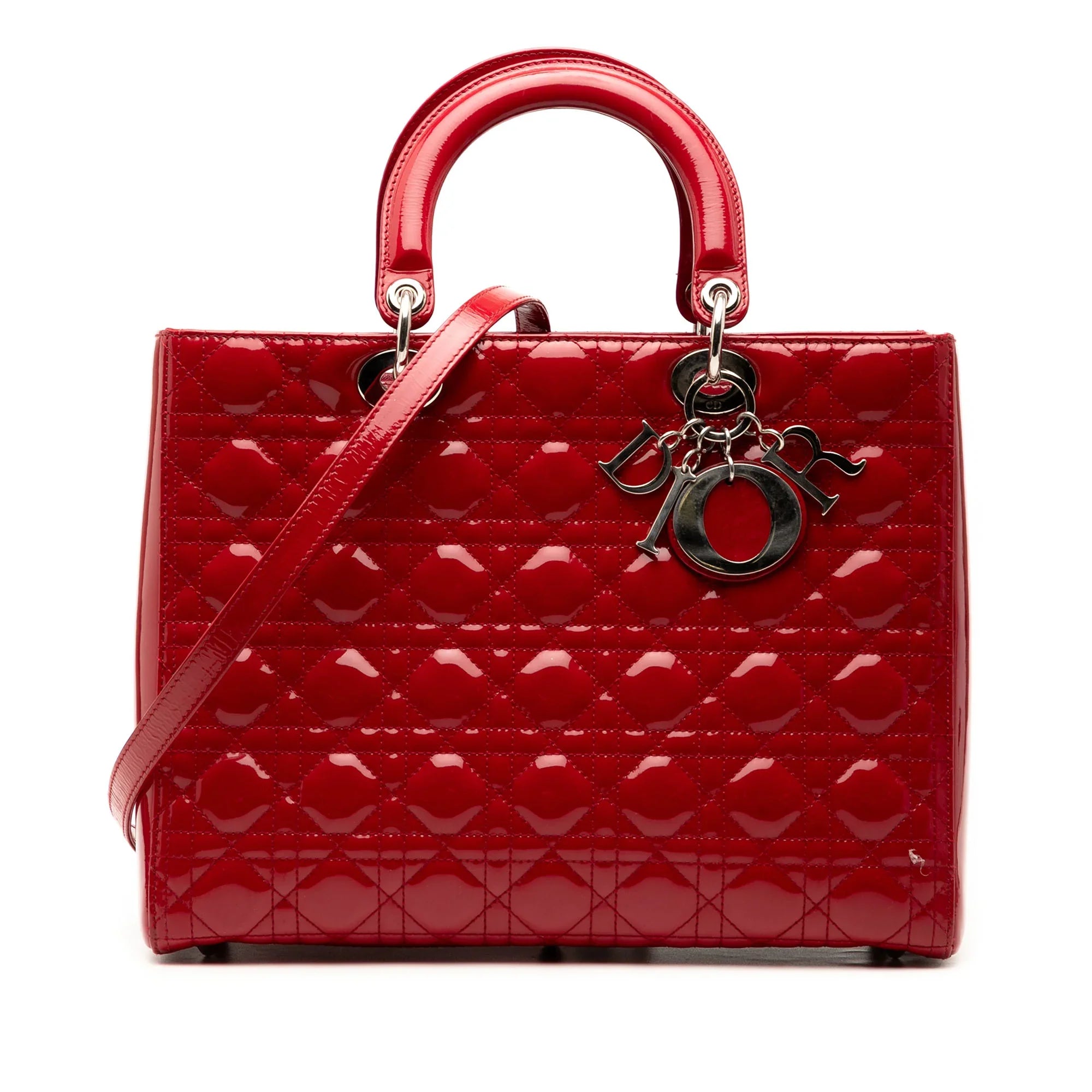 Please note this is a pre-owned item that may display signs of wear consistent with the condition listed above and shown in photos. Designer Revival guarantees this is an authentic Red Dior Large Patent Cannage Lady Dior Satchel or 100% of your money back. Learn more about our authentication process.