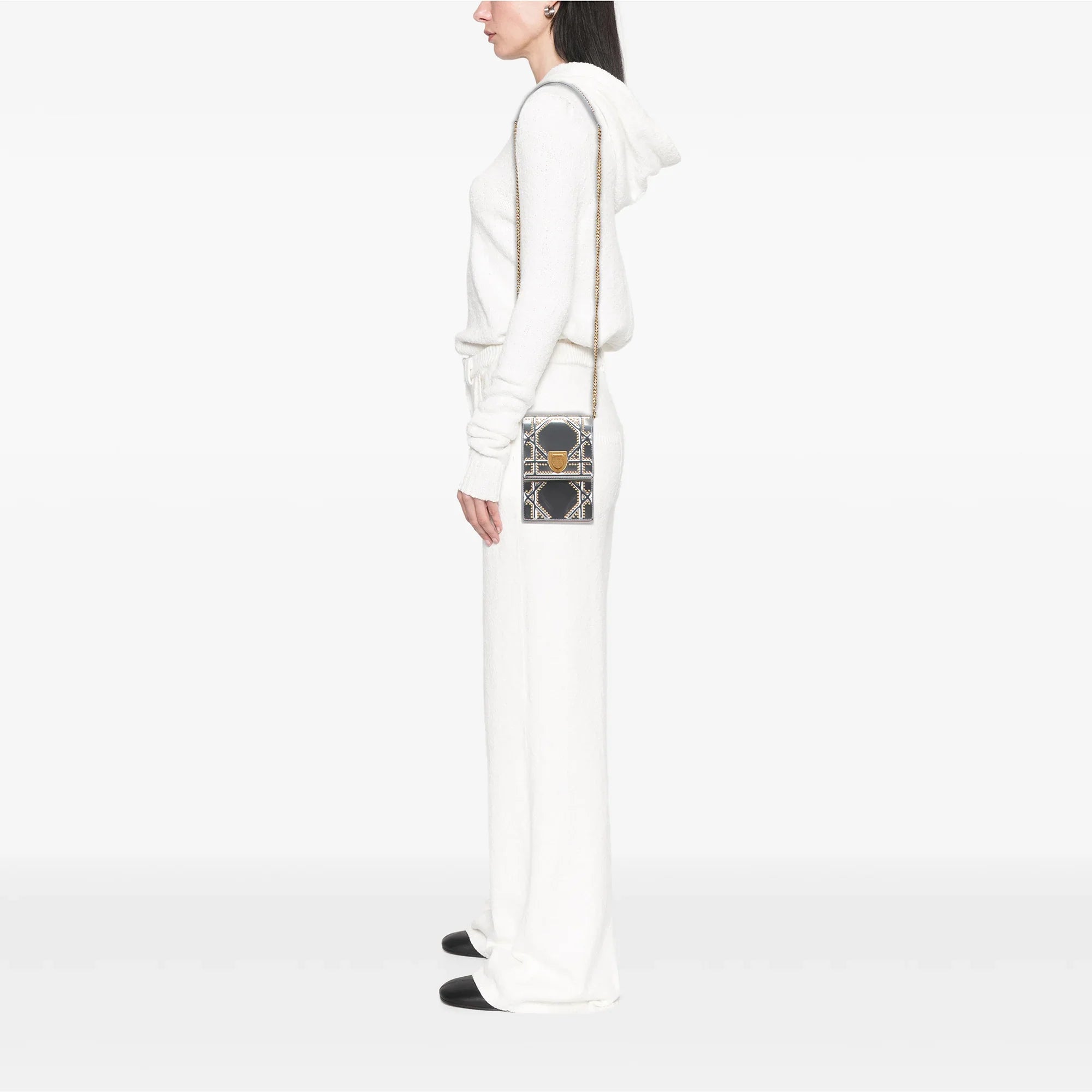 Silver Dior Metallic Studded Calfskin Vertical Diorama Crossbody Bag