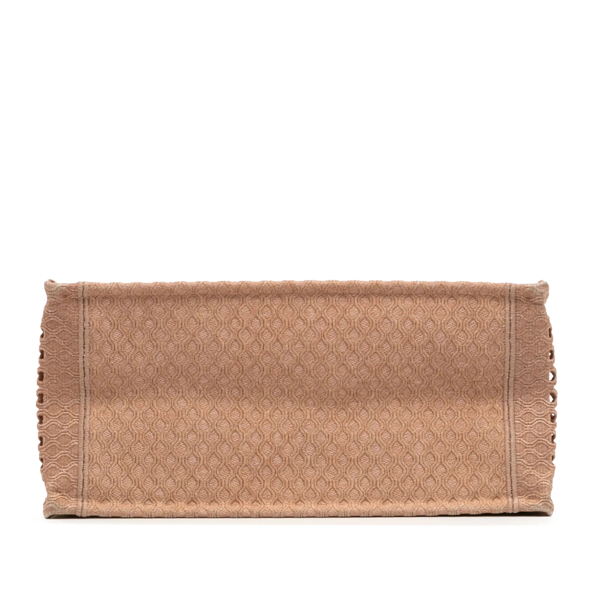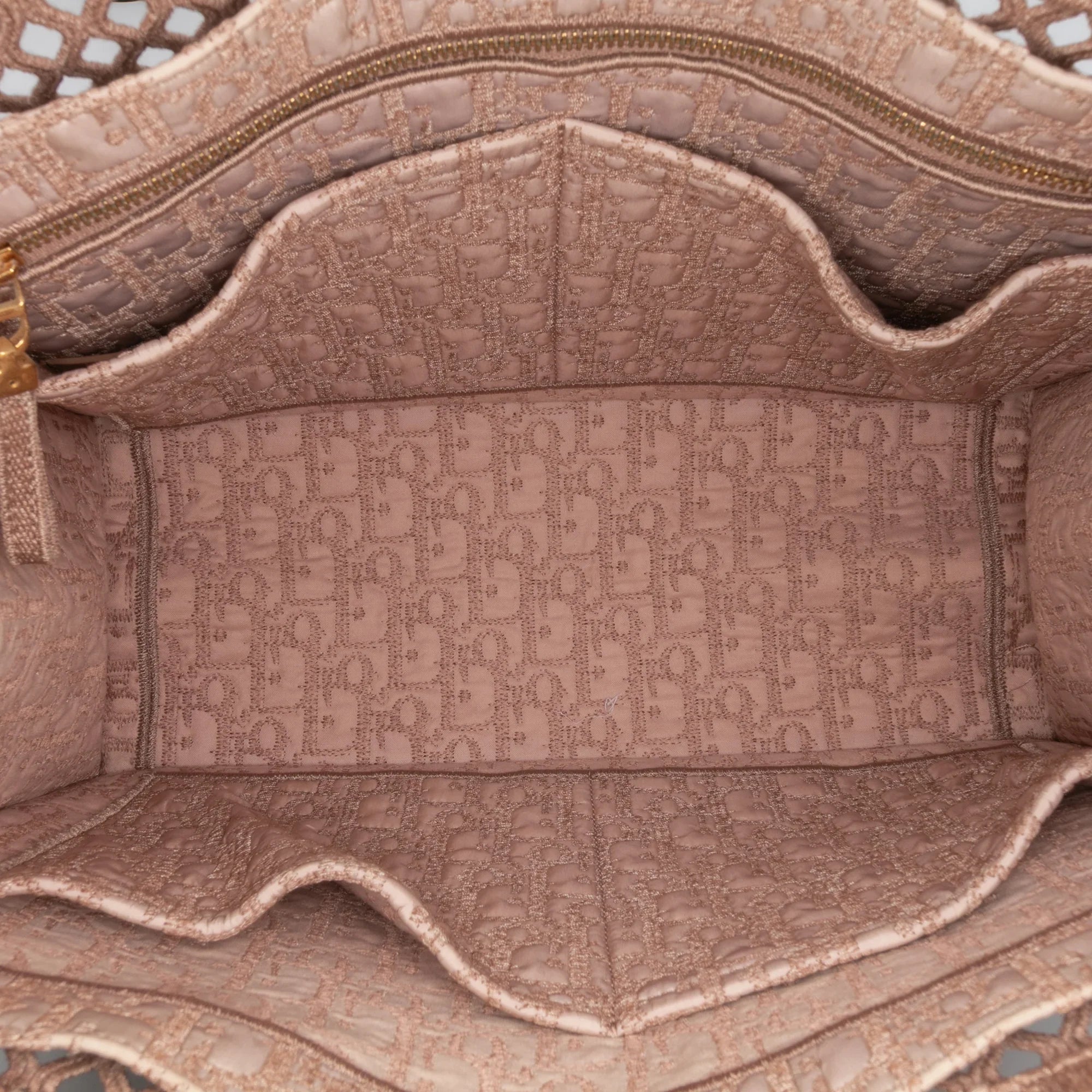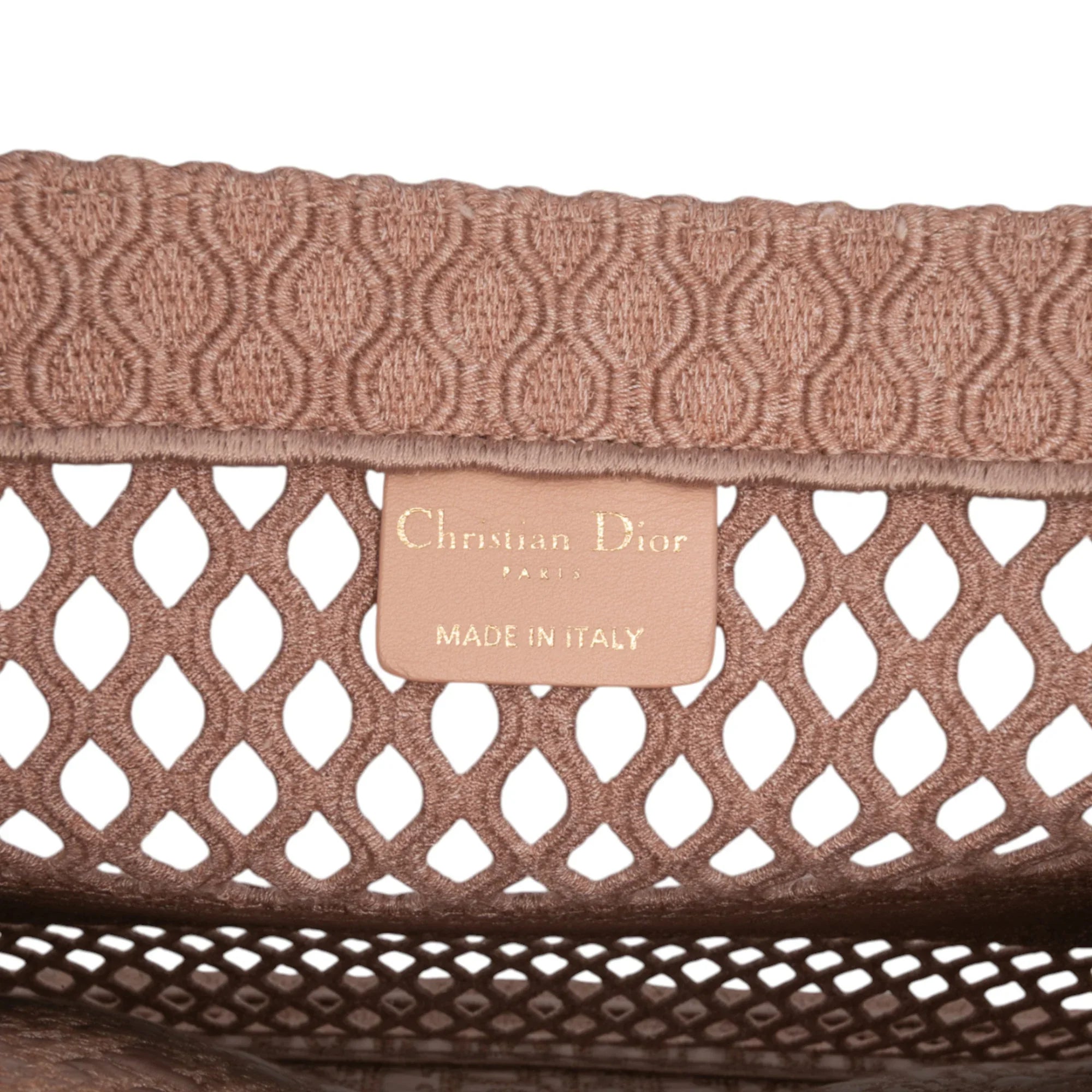Tan Dior Medium Embroidered Mesh Book Tote - Designer Revival Tan Dior Medium Embroidered Mesh Book Tote - Designer Revival