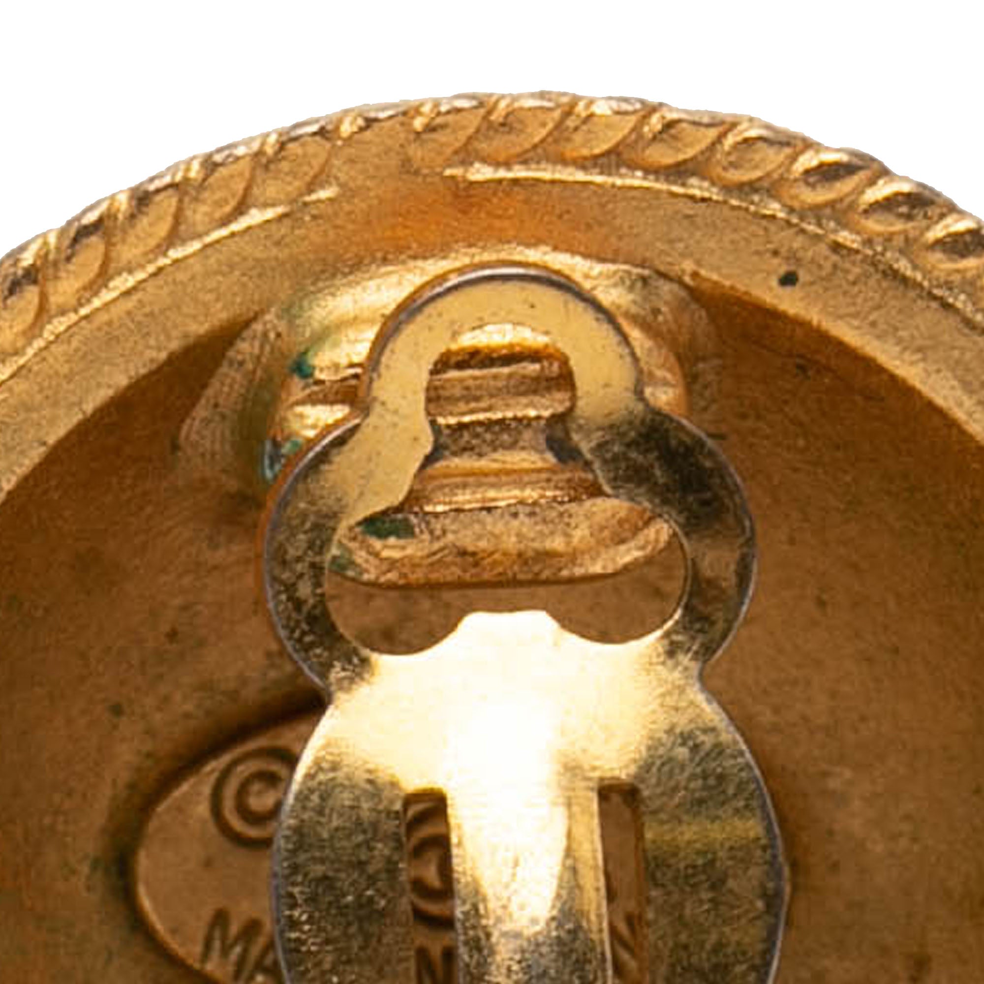 Gold Chanel CC Gold Plated Round Clip On Earrings