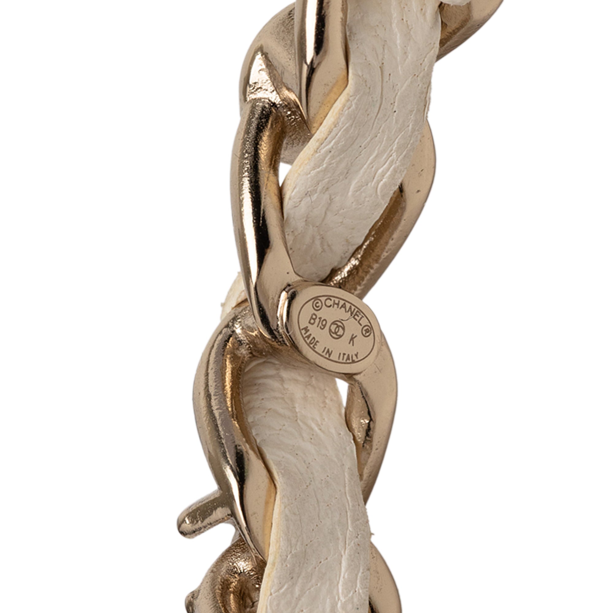 Please note this is a pre-owned item that may display signs of wear consistent with the condition listed above and shown in photos. Designer Revival guarantees this is an authentic Gold Chanel CC Leather Woven Gold Plated Chain Faux Pearl Hoop Push Back Earrings or 100% of your money back. Learn more about our authentication process.