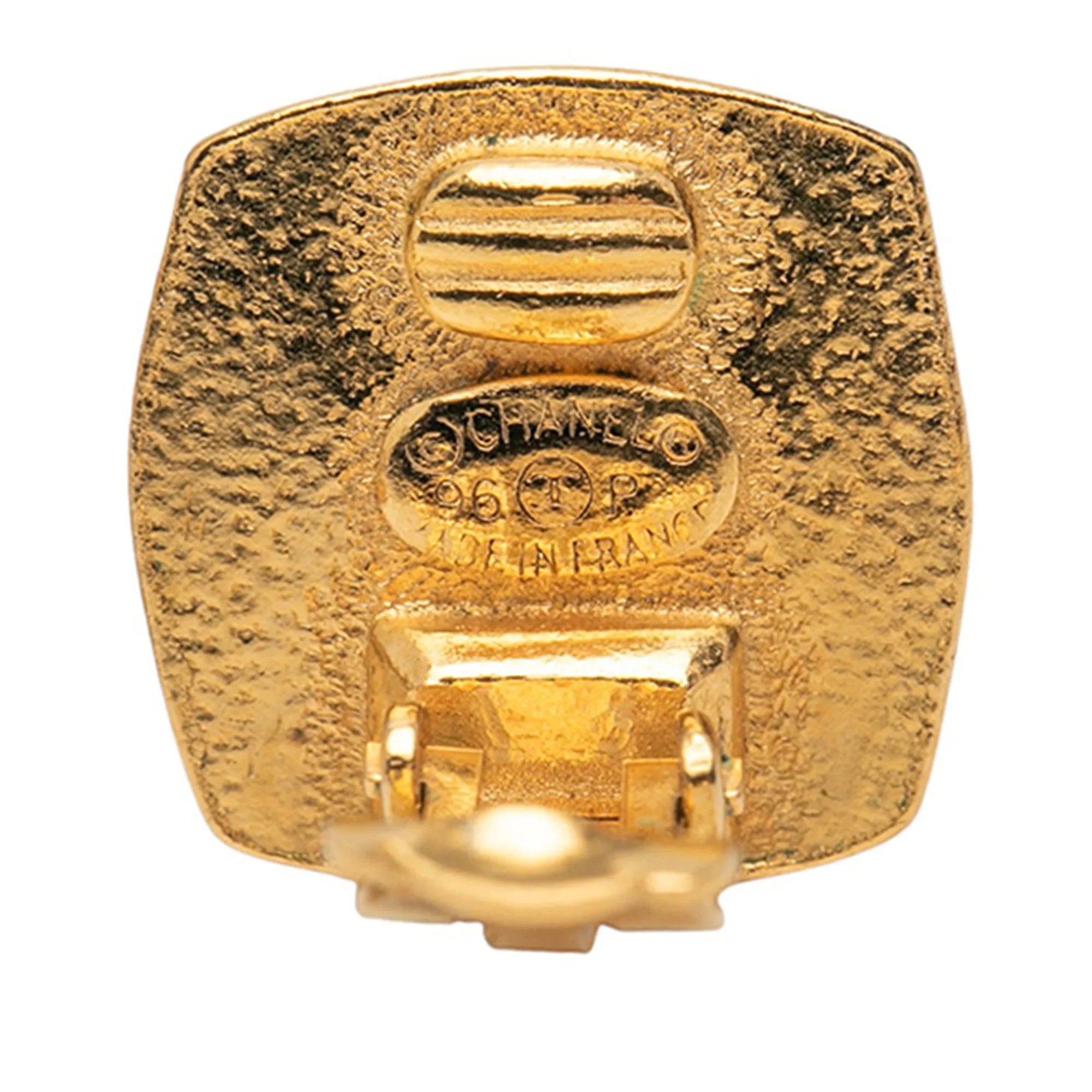 Gold Chanel Gold Plated CC Enamel Square Clip On Earrings