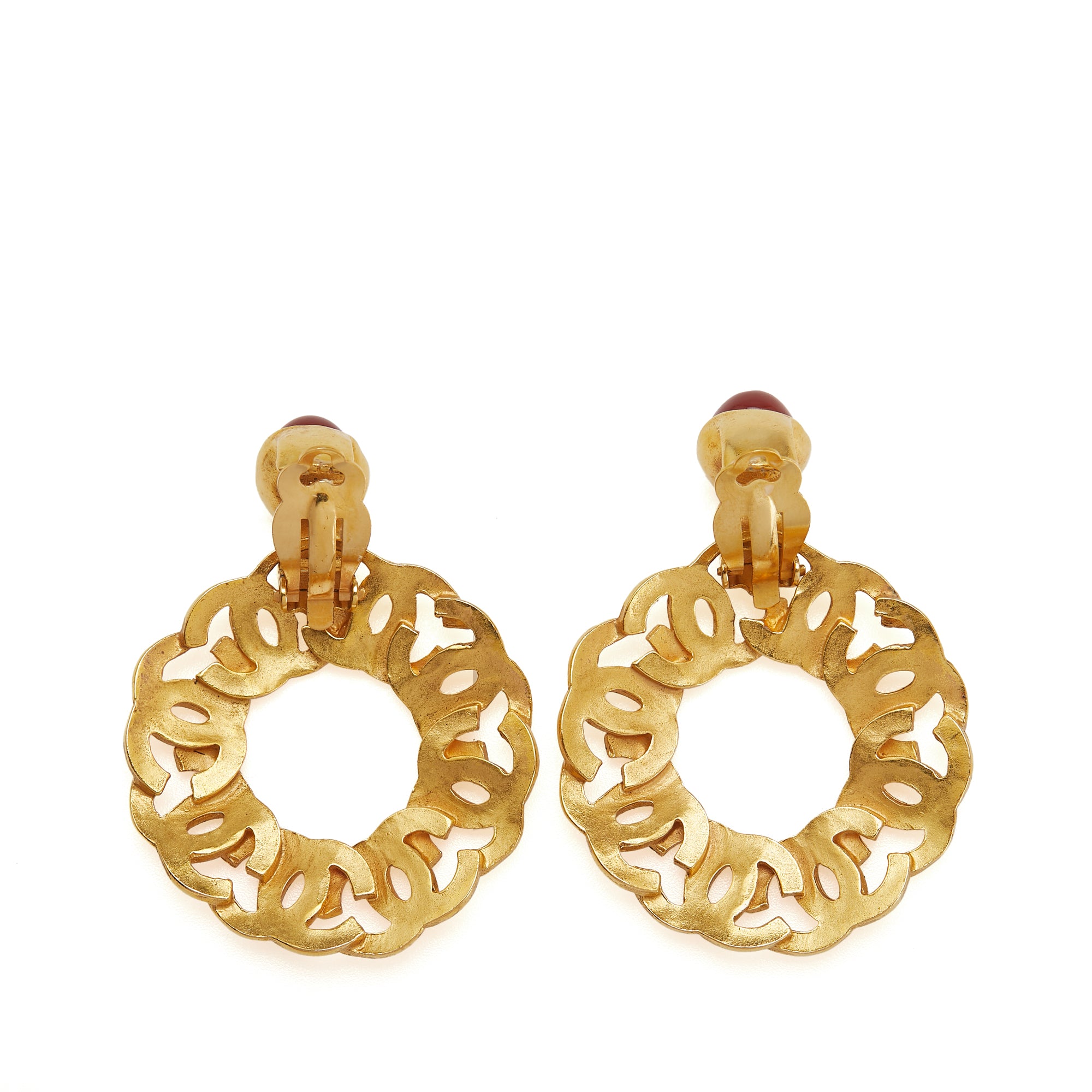 Gold Chanel Gold Plated CC Gripoix Clip On Earrings
