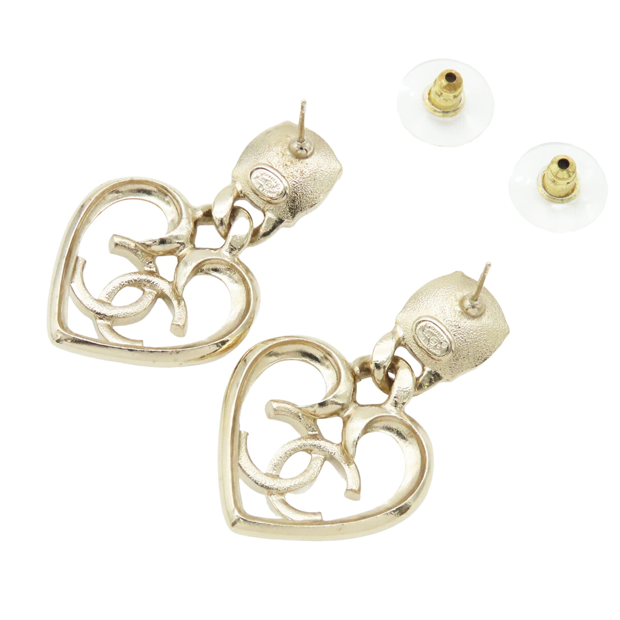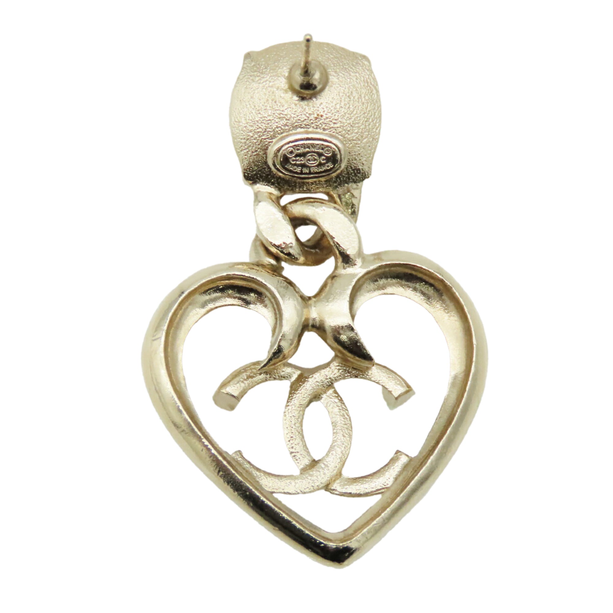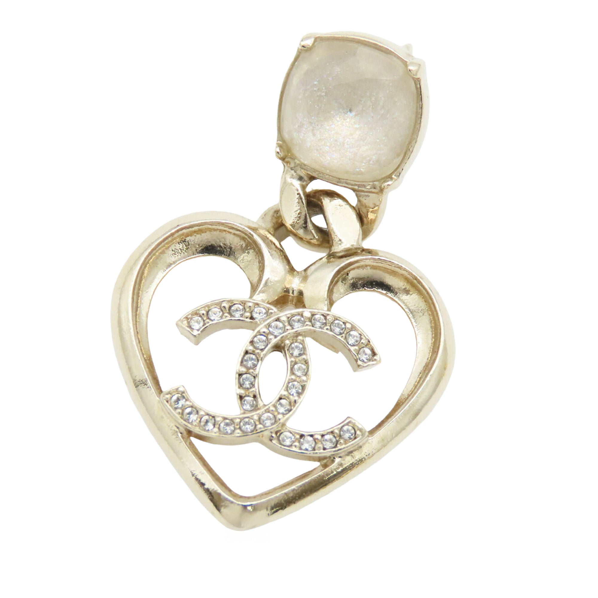 Gold Chanel Gold Plated CC Rhinestone Heart Earrings