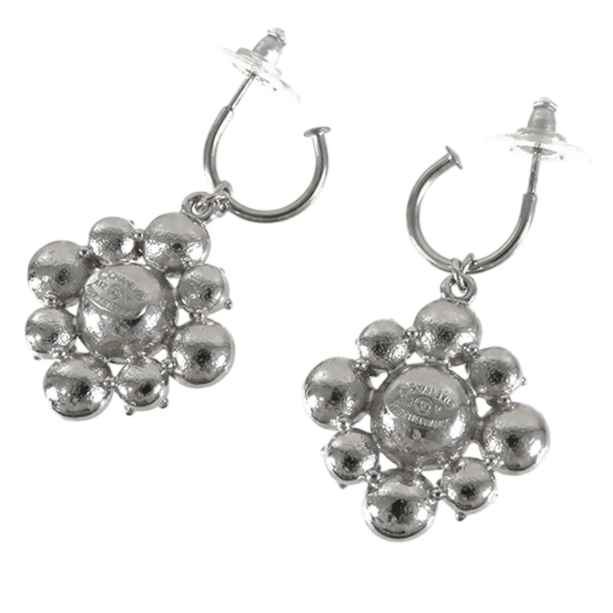 Silver Chanel CC Silver Plated Crystal Dangle Earrings