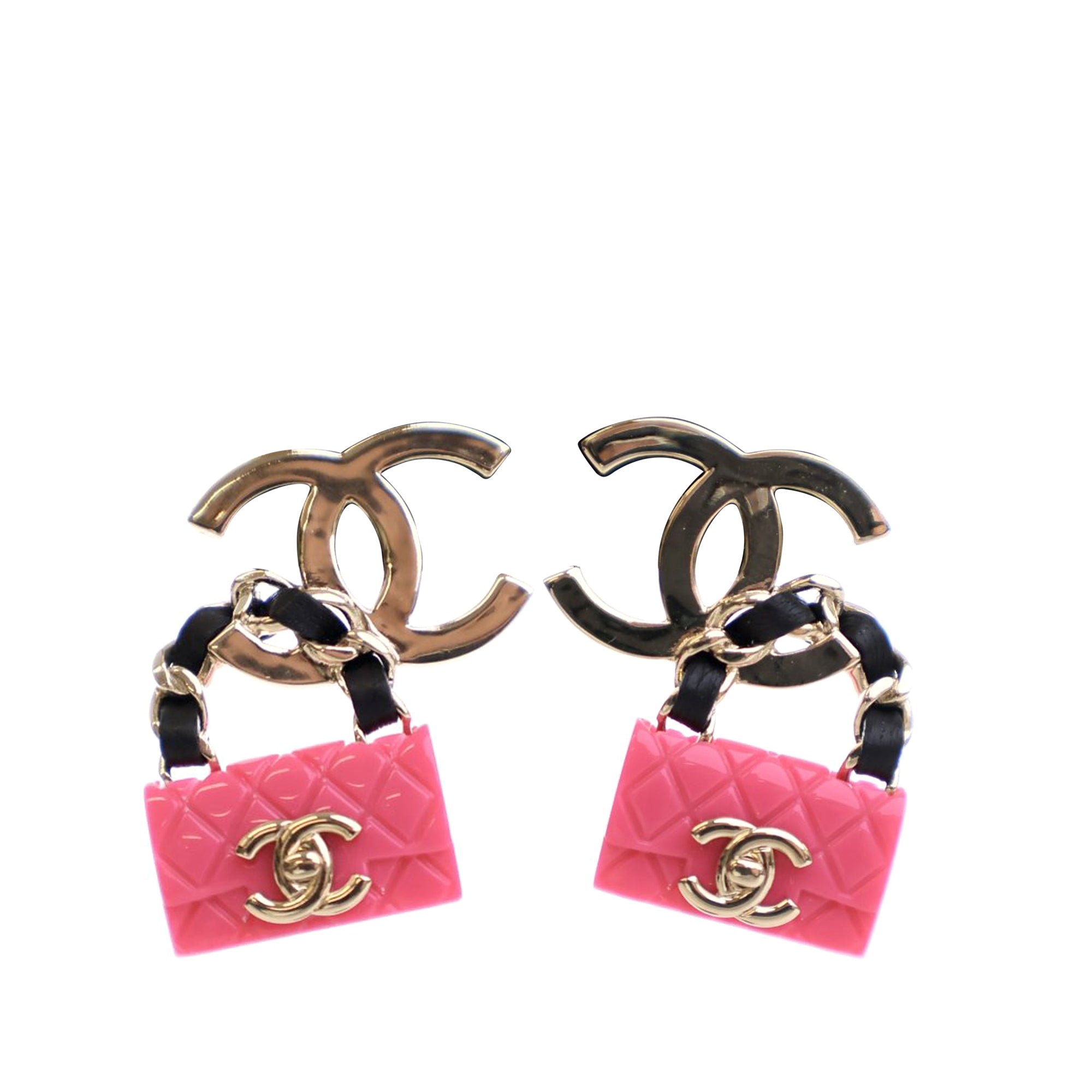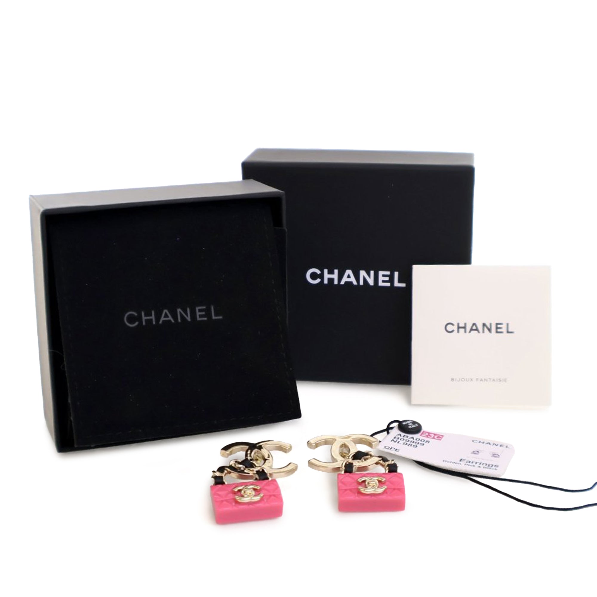 Silver Chanel Silver Plated Matelasse Enamel CC Flap Push Back Earrings