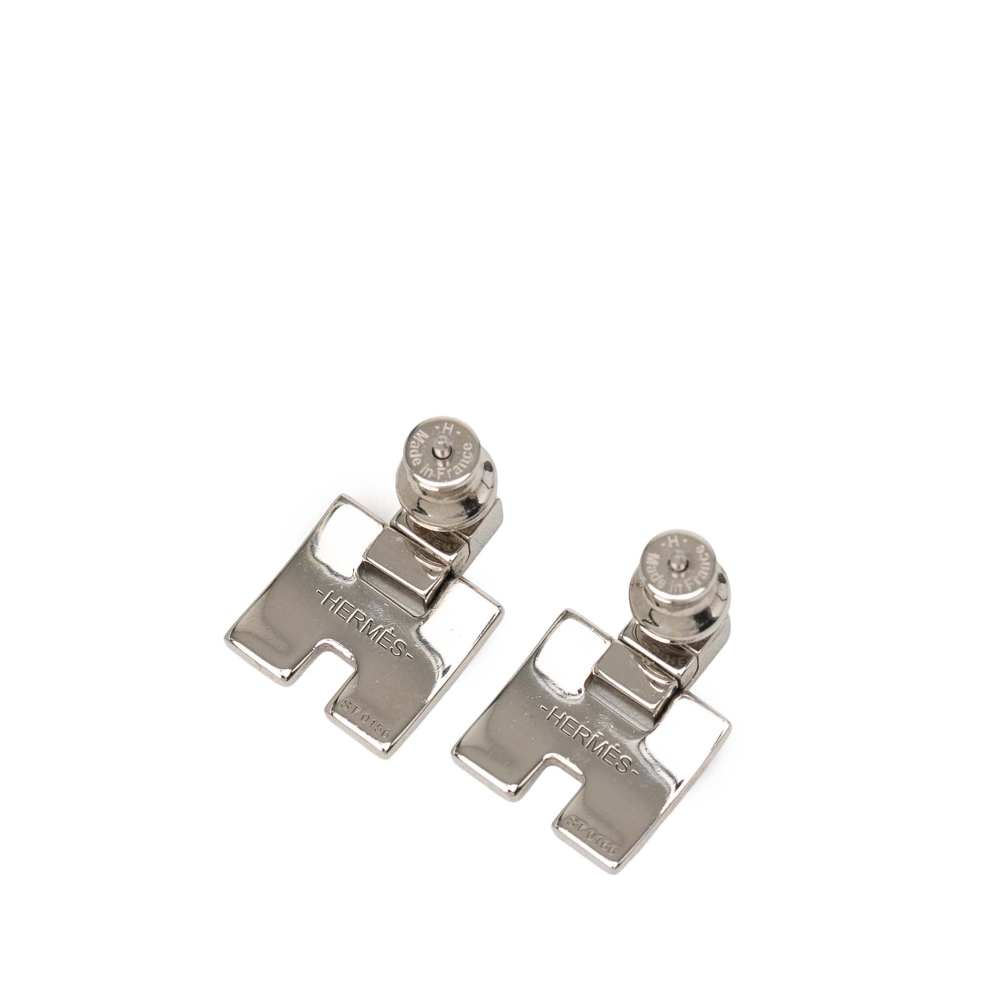 Silver Hermès Silver Plated Enamel Eileen Push Back Earrings