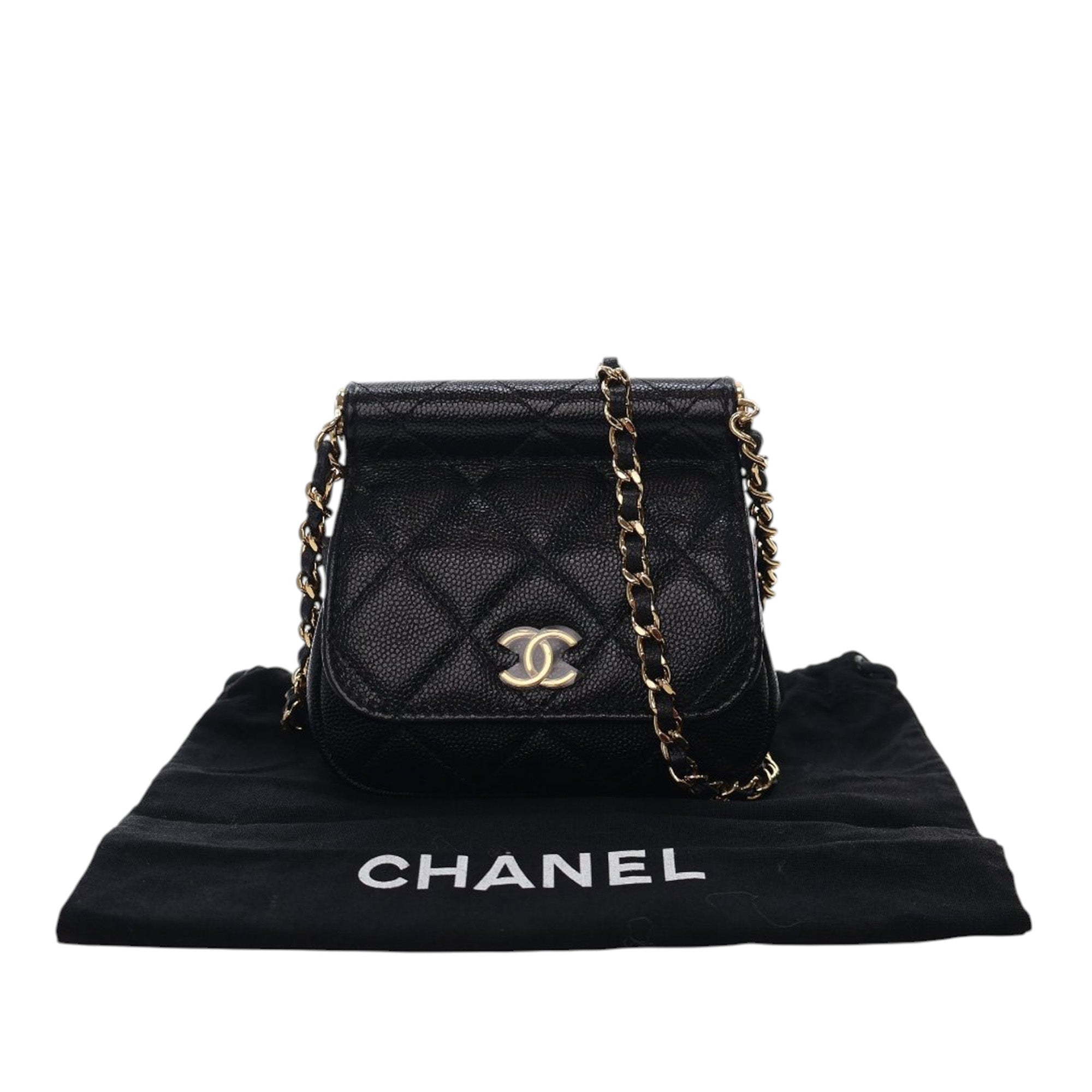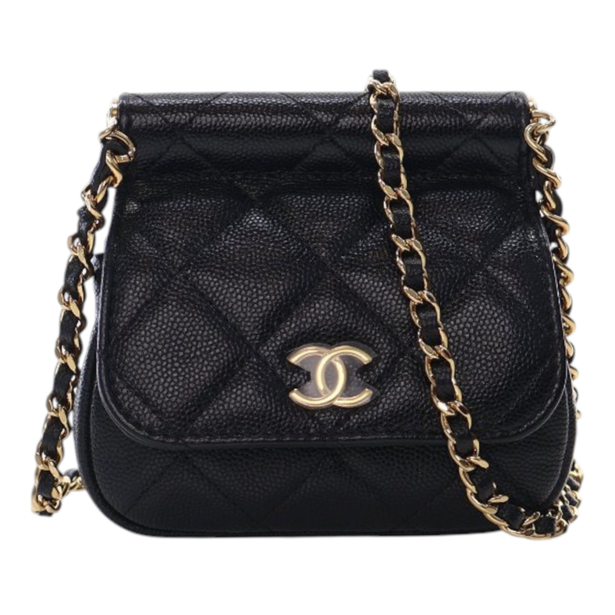 Black Chanel Mini Caviar Bar Clutch On Chain Crossbody Bag