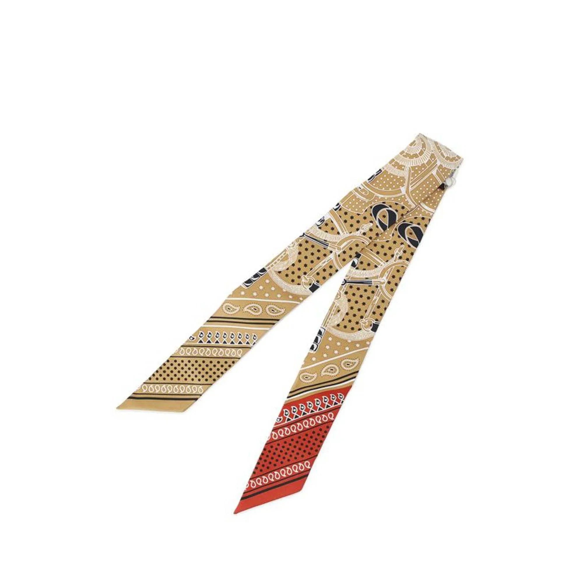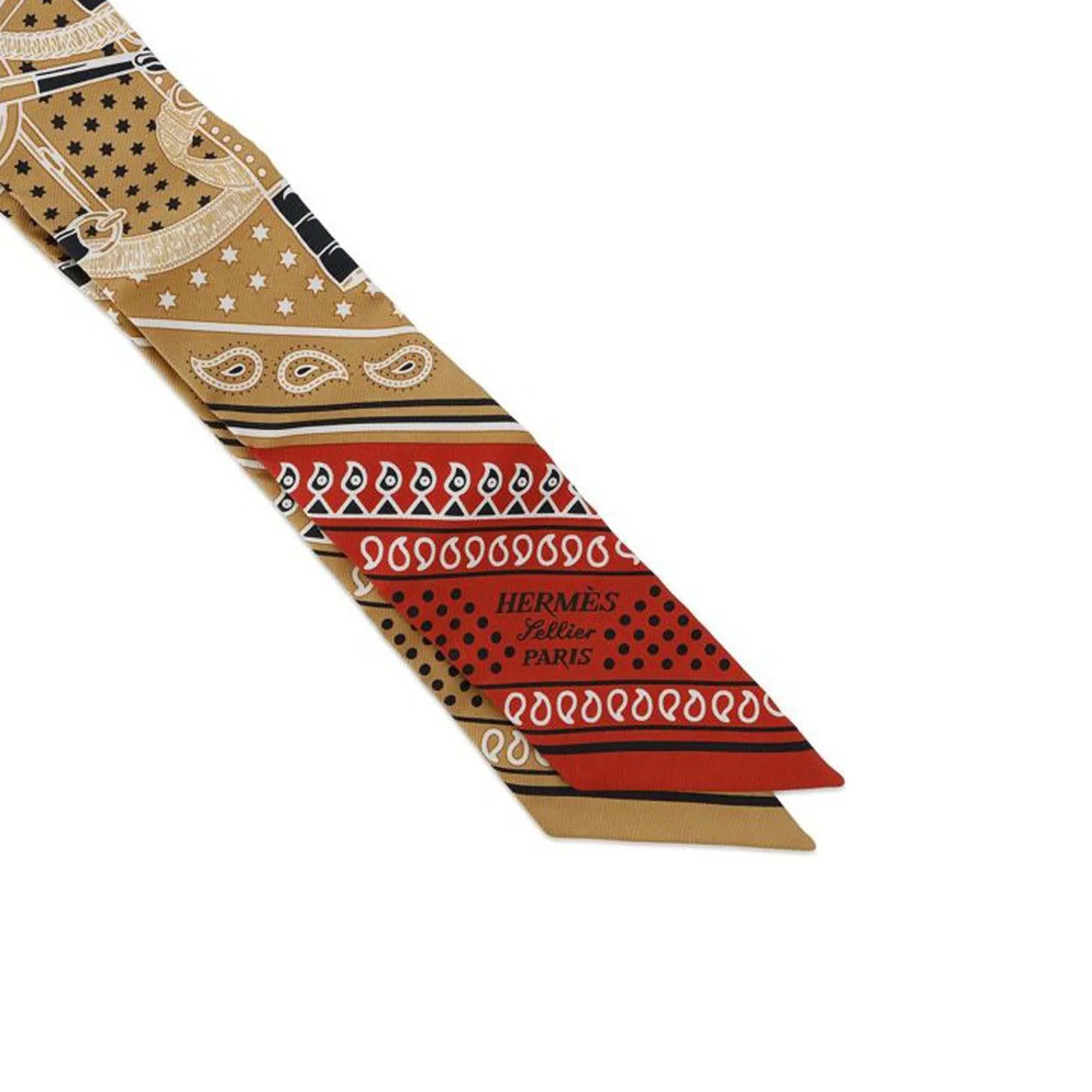 Brown Hermès Eperon d Or Bandana Silk Twilly Scarf Scarves