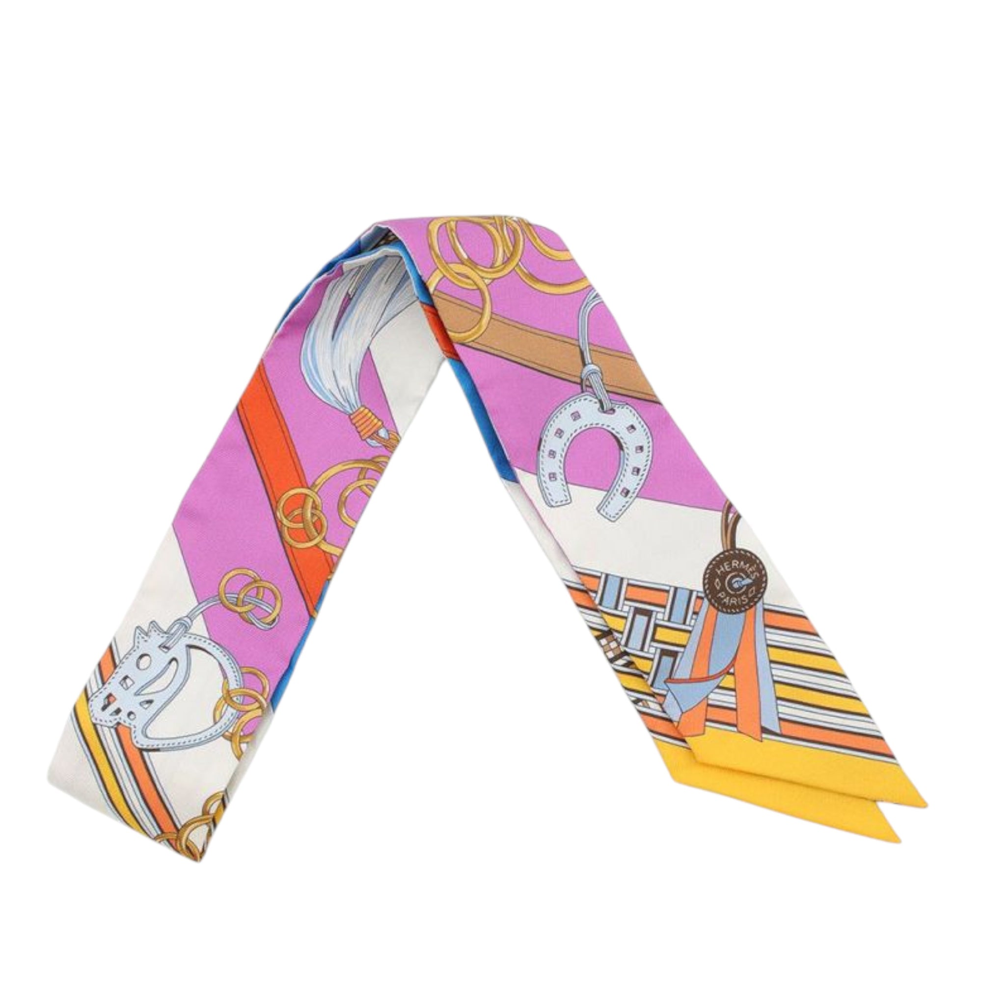Product Details: White Hermès Brides et Gris Gris Silk Twilly Scarf Scarves. This twilly scarf features the Brides et Gris-Gris print on 100% silk. 33.9" L x 2" W x 0" D.