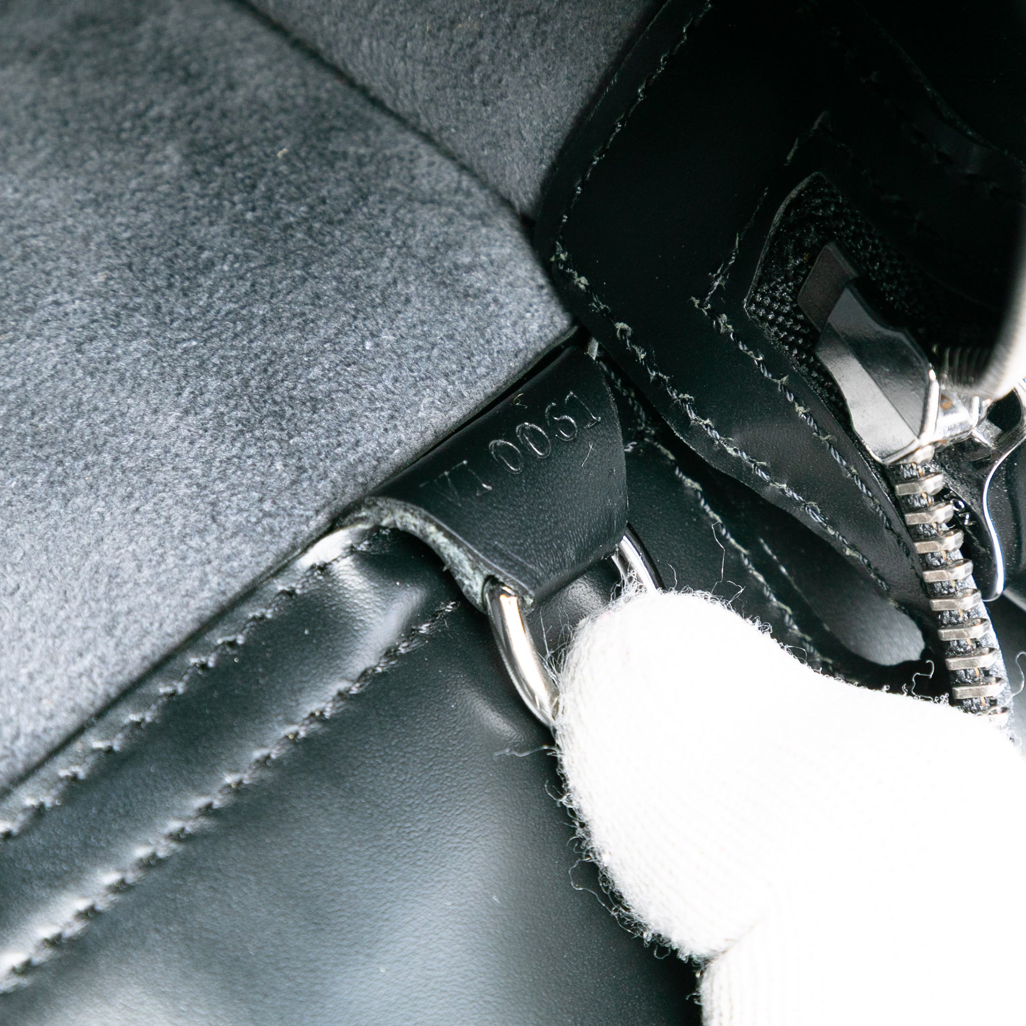 Product Details: Black Louis Vuitton Epi Gemeaux Tote Bag. The Gemeaux features an epi leather body, flat leather top handles, a top zip closure, and interior slip pockets. 12.6" L x 15" W x 4.3" D, 8.9" drop. Serial number VI 0061.