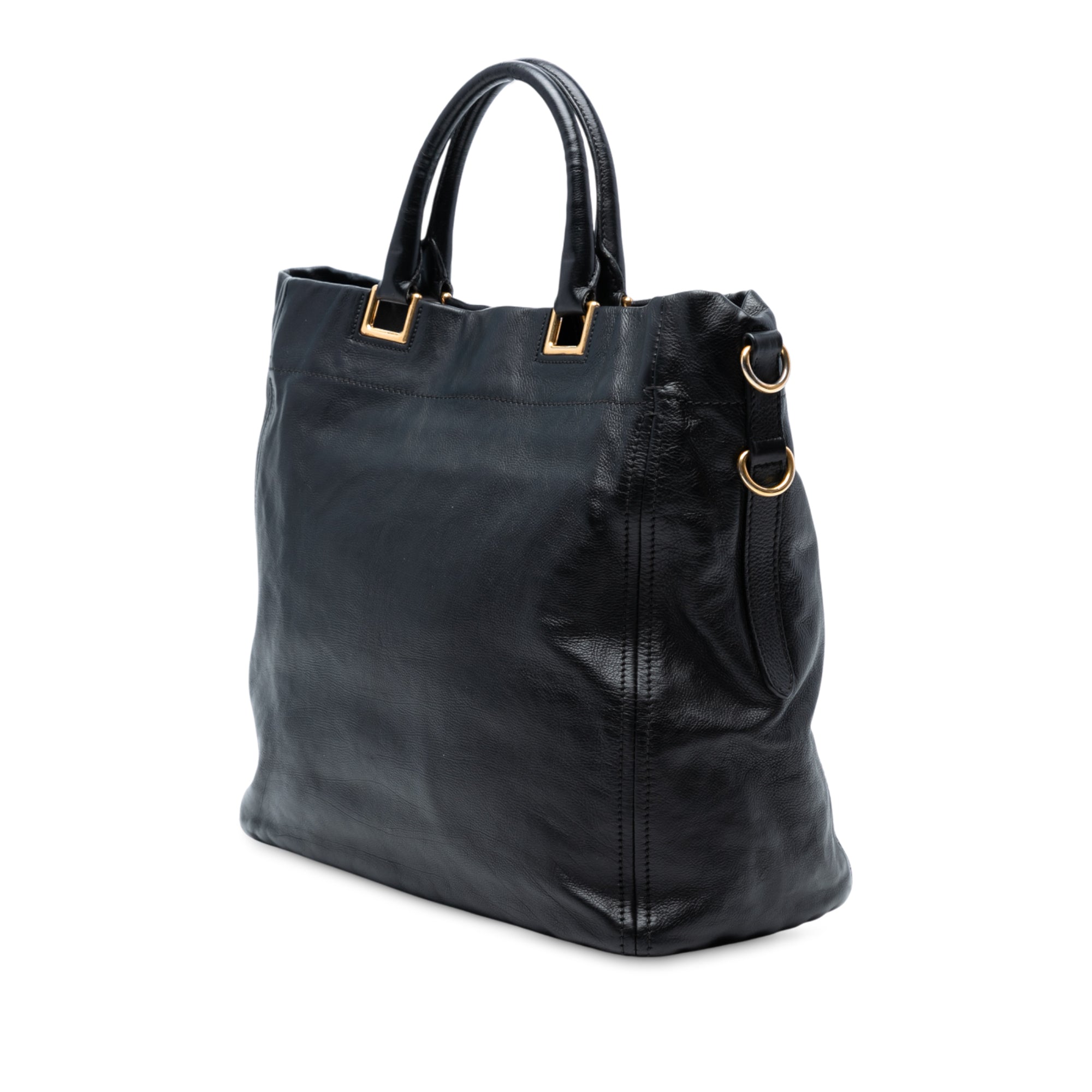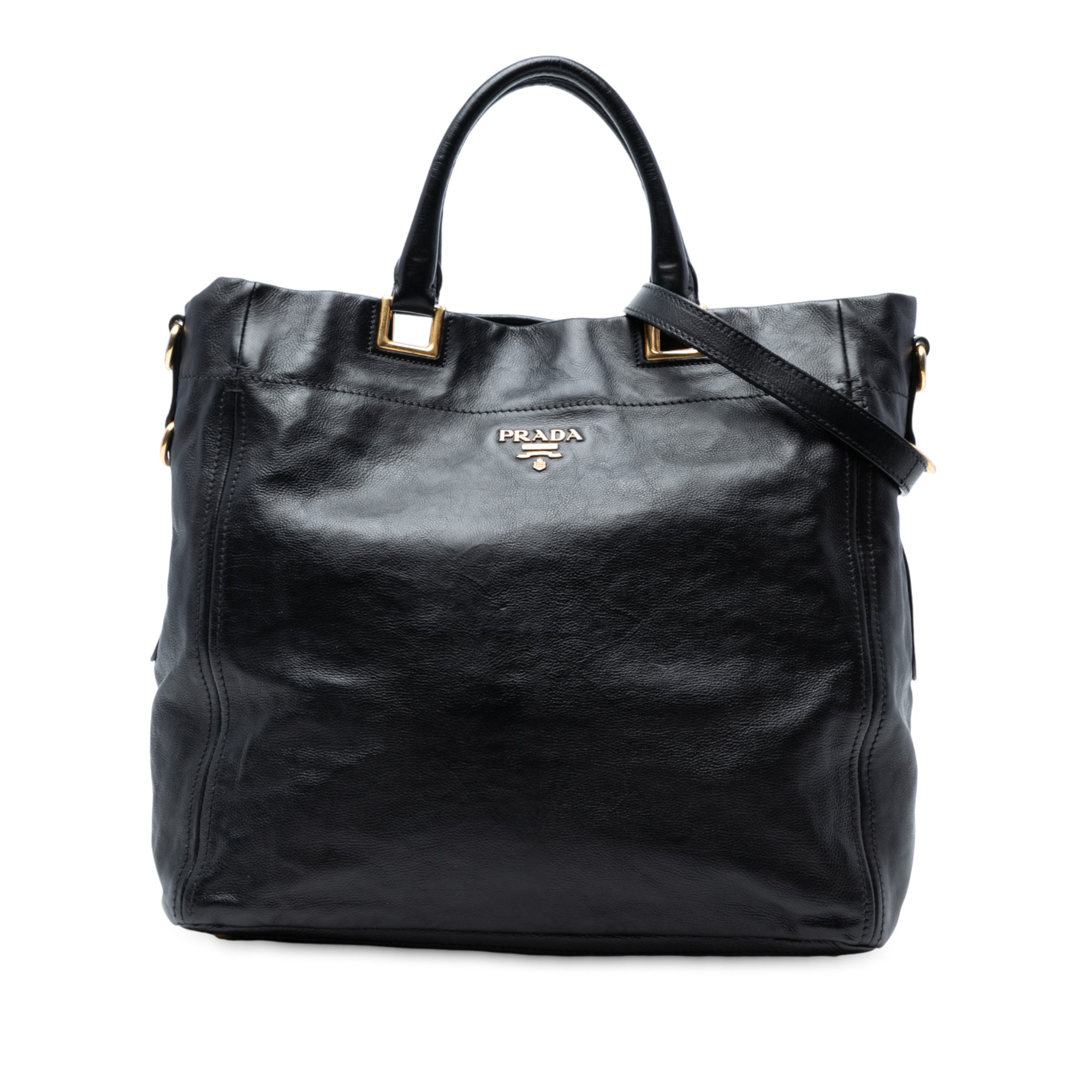 Black Prada Glace Calf Open Convertible Tote Satchel