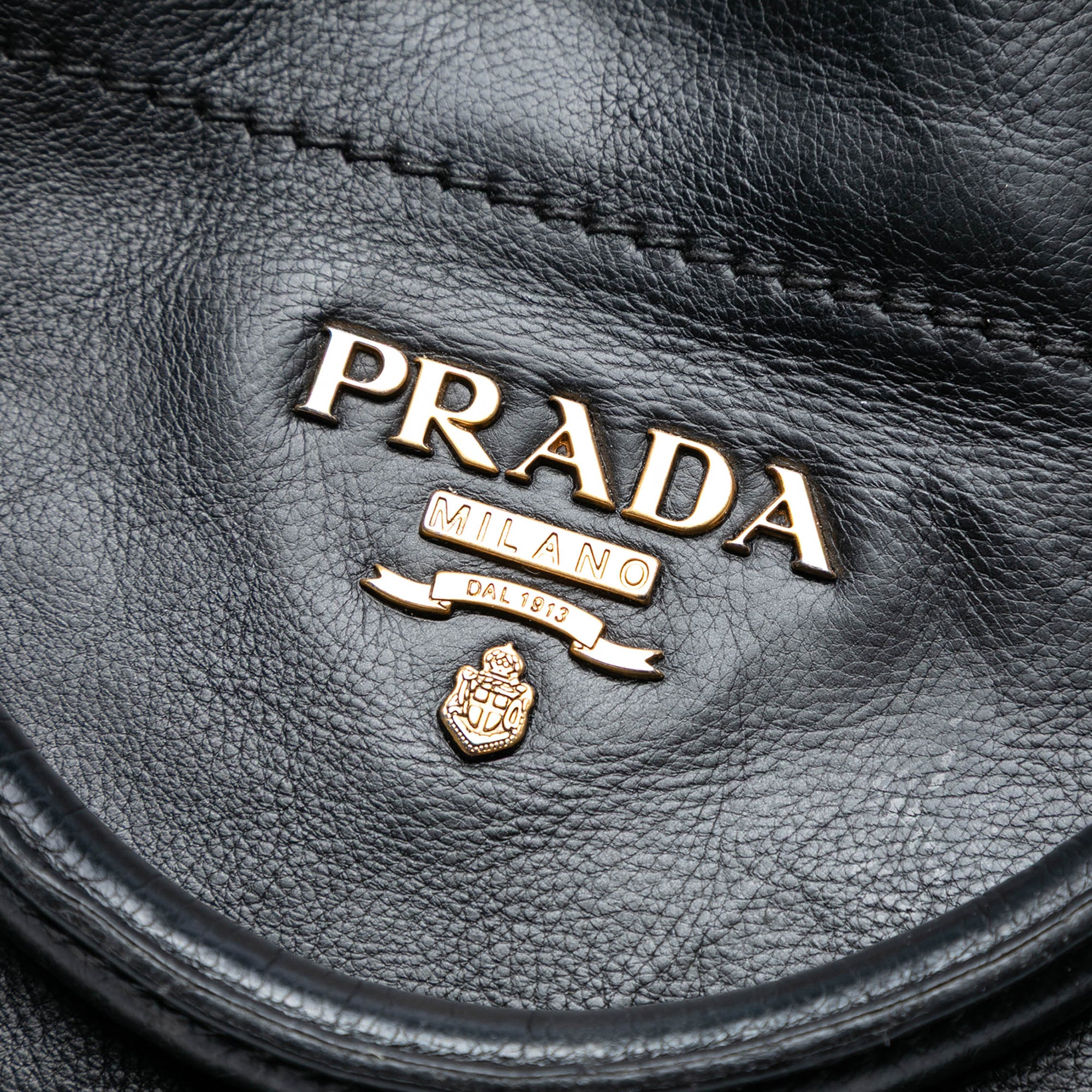 Please note this is a pre-owned item that may display signs of wear consistent with the condition listed above and shown in photos. Designer Revival guarantees this is an authentic Black Prada Glace Calf Open Convertible Tote Satchel or 100% of your money back. Learn more about our authentication process.