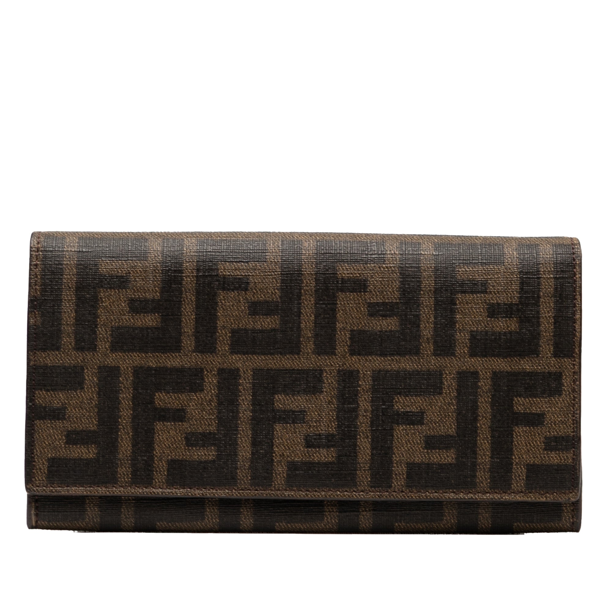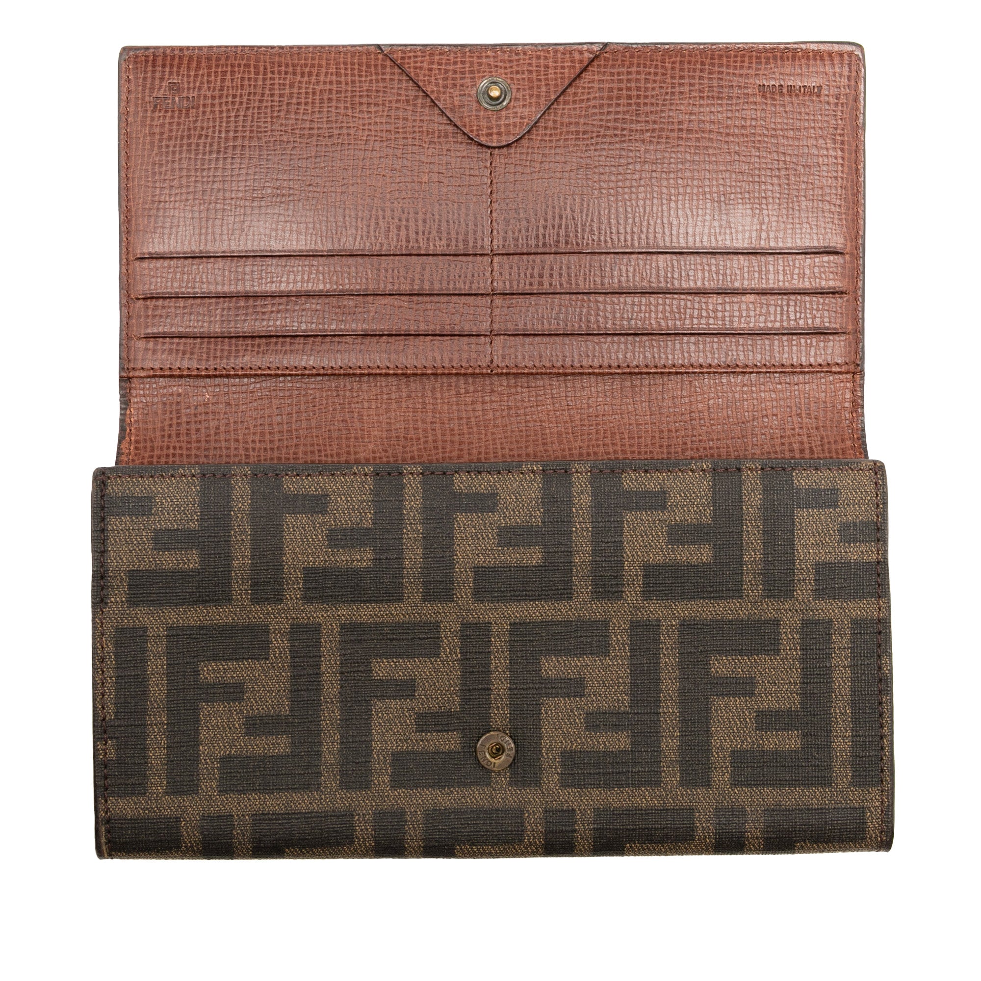 Brown Fendi Zucca Coated Canvas Trifold Long Wallet