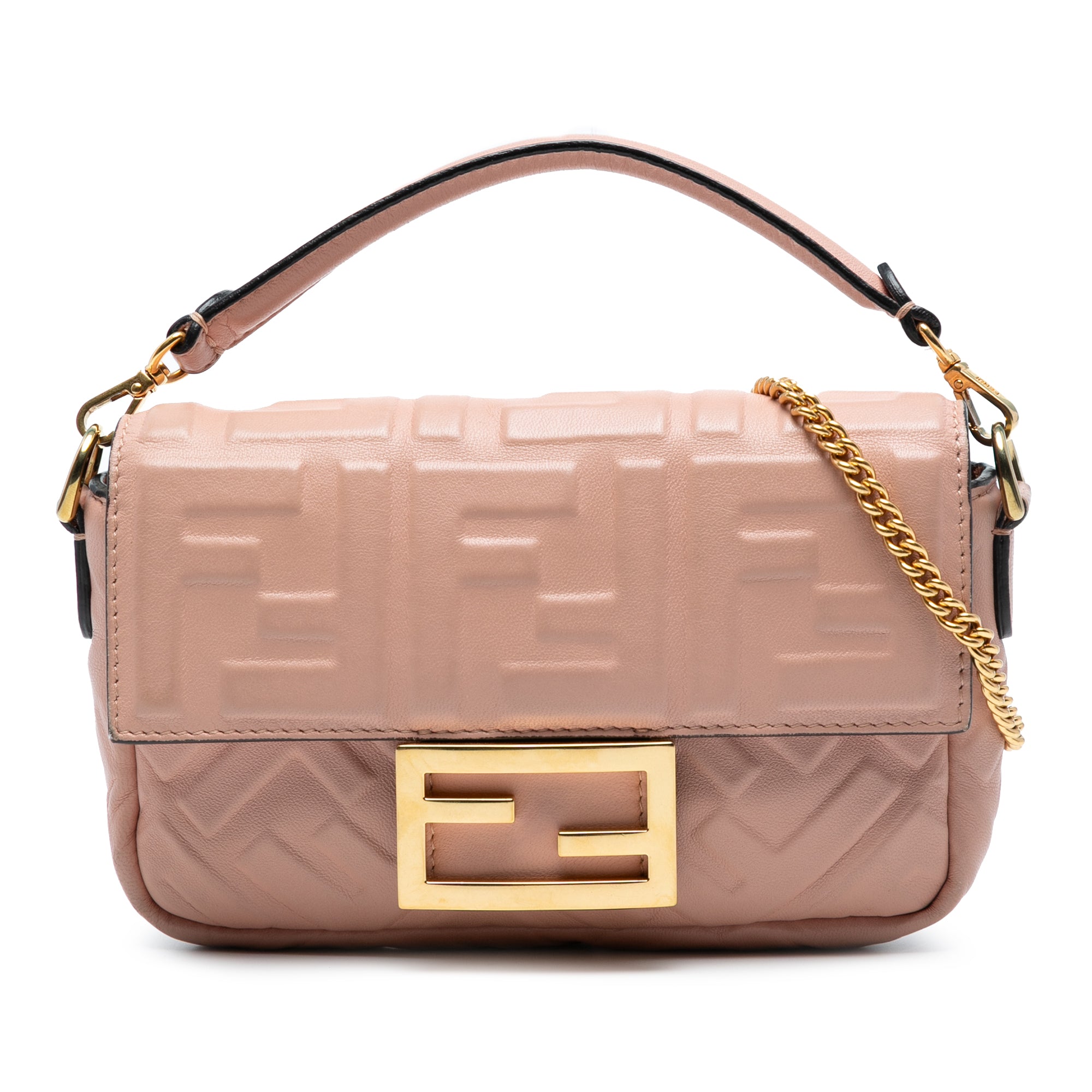 Pink Fendi Mini Zucca Embossed Leather Baguette Satchel