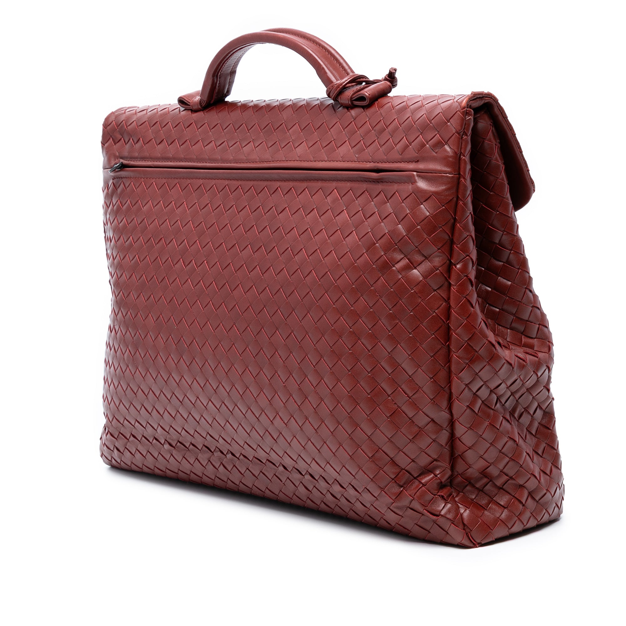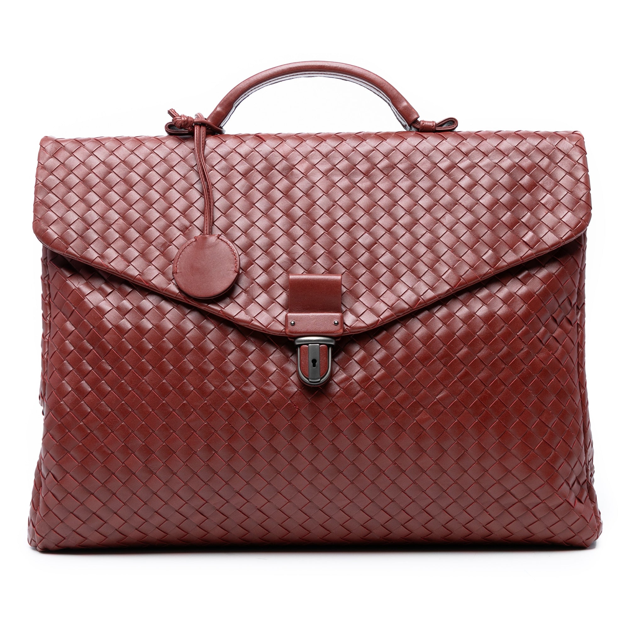 Please note this is a pre-owned item that may display signs of wear consistent with the condition listed above and shown in photos. Designer Revival guarantees this is an authentic Red Bottega Veneta Nappa Intrecciato Briefcase Business Bag or 100% of your money back. Learn more about our authentication process.